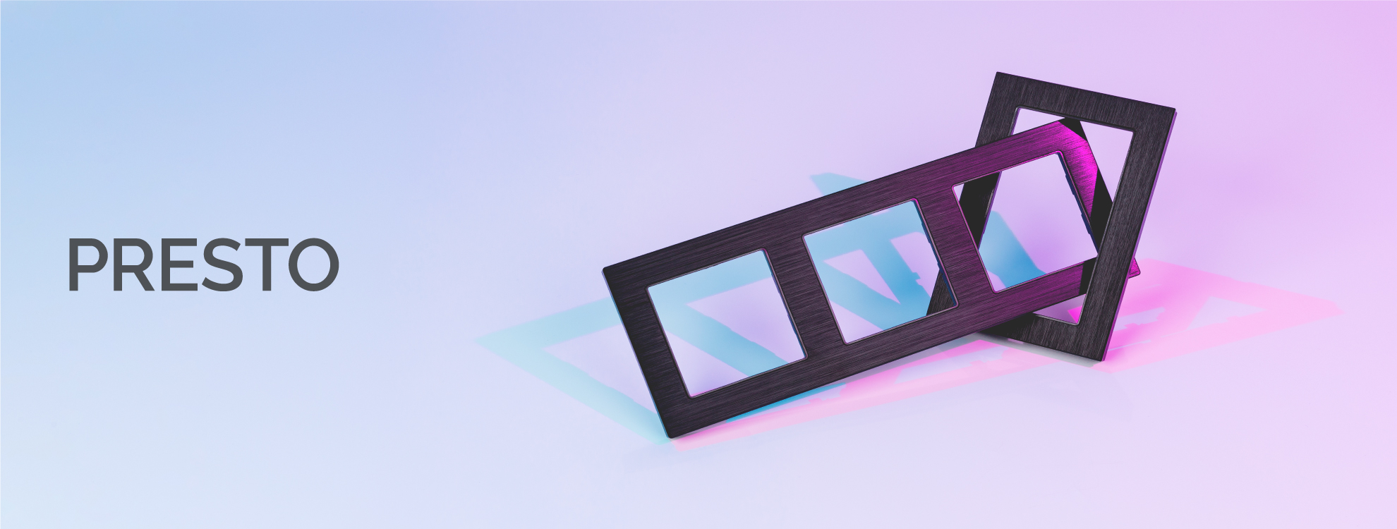 Эстетичный дизайн и классическая цветовая гамма (серебристый и черный цвета) позволяют подобрать оборудование согласно вашим пожеланиям и интерьерной концепции. Корпус рамок PRESTO изготовлен из тугоплавкого пластика с лицевой панелью из алюминиевого сплава, поверхность которых имеет сатинированную обработку.