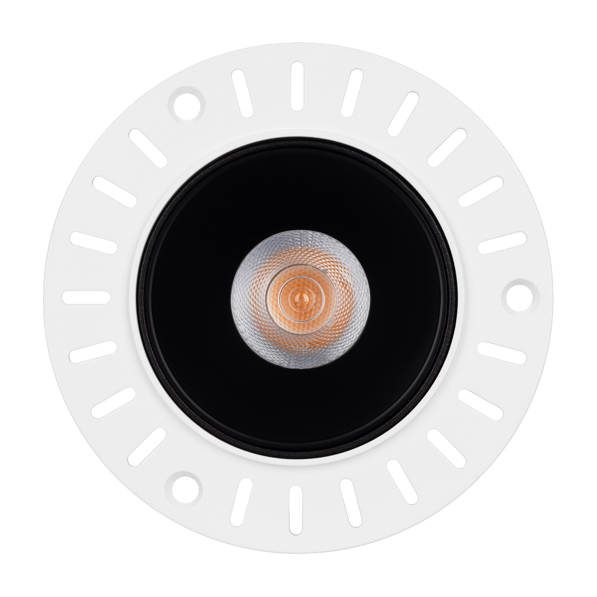 Встраиваемый безрамочный светильник под шпаклевку мощностью 12 Вт. Предназначен для освещения жилых, офисных, торговых и других помещений. Теплый белый цвет свечения (3000 К) и световой поток 890 лм. Заглубленная оптика ограничивает боковое излучение, тем самым исключая появление ослепляющего эффекта. Высокий индекс цветопередачи (CRI>90) и узкий угол излучения 32° для локального освещения. Светильник встраивается в установочное отверстие диаметром 85 мм. Драйвер в комплекте для подключения к сети 230 В.