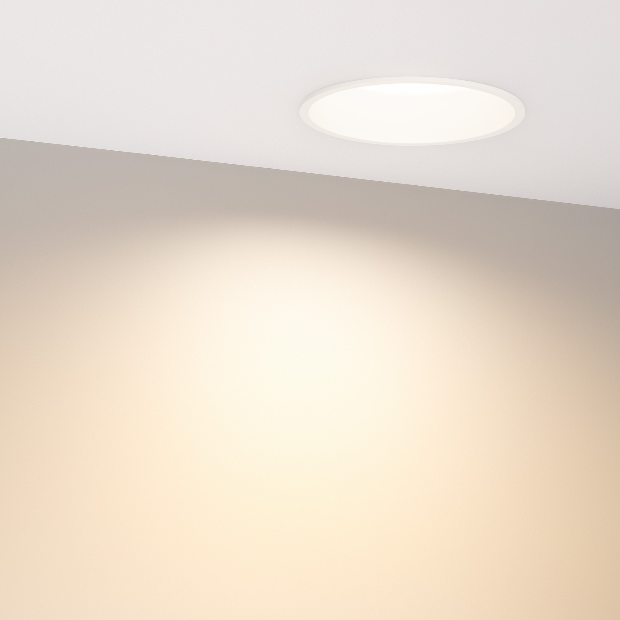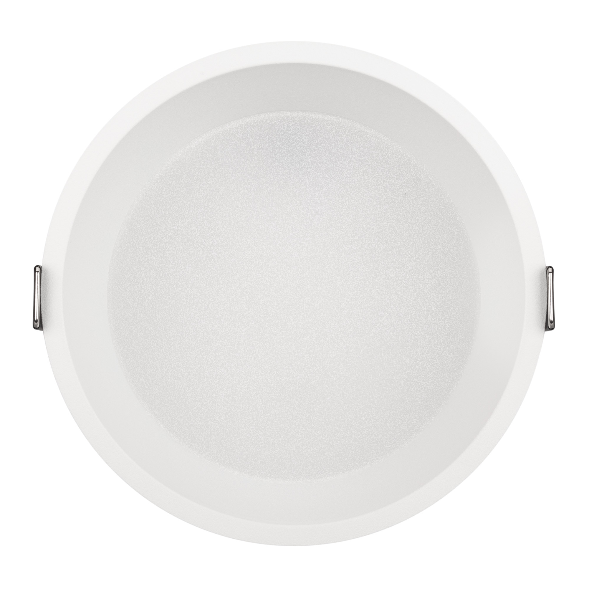 Встраиваемый круглый светильник с индексом цветопередачи CRI>90 и низкой пульсацией обеспечивает равномерное освещение без мерцания и видимости точек светодиодов с точной передачей цветовых оттенков. Алюминиевый корпус белого цвета с утопленным светодиодным модулем является интересным дизайнерским решением, создавая эффект света из ниоткуда и делая освещение комфортным для глаз. Особая конфигурация корпуса позволяет эффективно отводить тепло и продлевает срок службы светодиодов. Светильник с широким углом излучения 90 градусов и световой эффективностью 70 лм/Вт подходит для качественного основного освещения. Легко устанавливается с помощью пружин в монтажное отверстие. Драйвер поставляется в комплекте и позволяет быстро подключать светильник напрямую к сети переменного тока 230 В. Диммирование возможно при замене штатного драйвера. Степень защиты от пыли IP20 позволяет применять модель в жилых, коммерческих, торговых и других помещениях, где отсутствует контакт с водой.