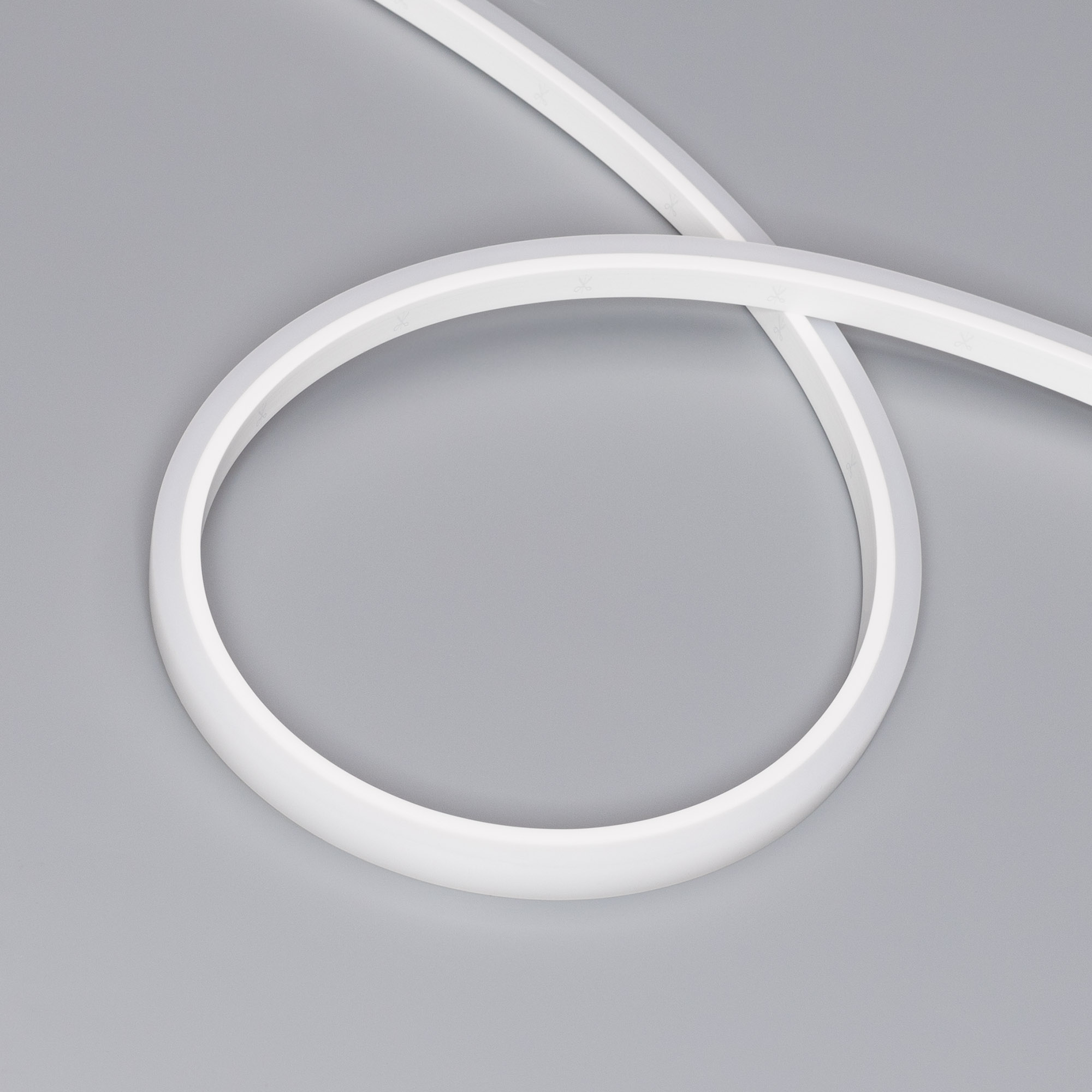 Гибкая герметичная лента (неон серии WAVE), сечение 10×10 мм. Светодиоды SMD2835 144 шт/м. Цвет свечения ТЕПЛЫЙ БЕЛЫЙ (3500 K), индекс цветопередачи CRI>90, световой поток 365 лм/м, угол излучения 170°. Мощность 5 Вт/м, питание 24 В. Оболочка из Полиуретана (PU). Класс пылевлагозащиты IP68. Размеры 3000×10×10 мм. Не подлежит резке. Вертикальный изгиб TOP, минимальный радиус изгиба 75 мм. Катушка 3 м. Цена за 1 м. Гарантия 3 года.