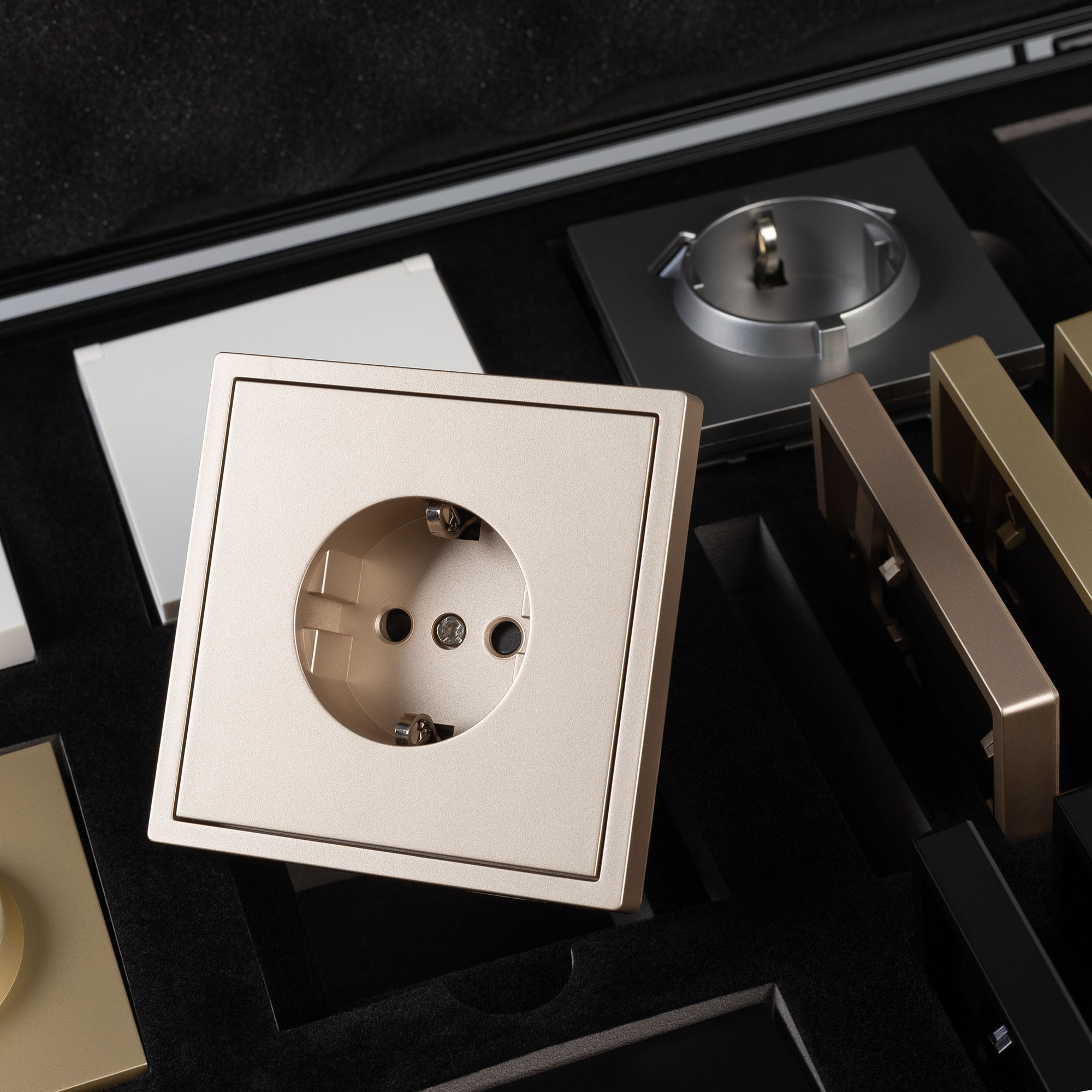 Демо-кейс с наполнением электроустановочных изделий серии TENDO.