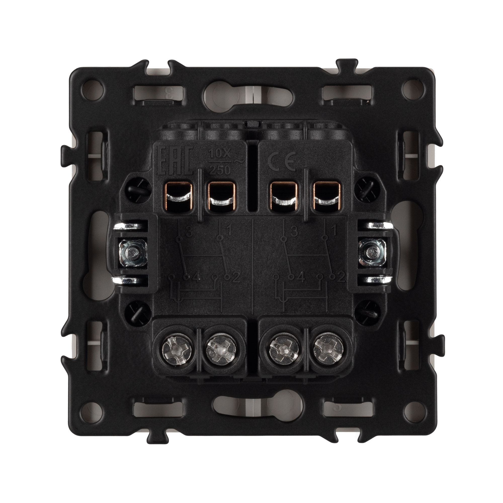 Механизм выключателя двухклавишный перекрёстный SWT-NOBE-MKX2-SFPL-IS (230V, 10A) (Arlight, Никель)