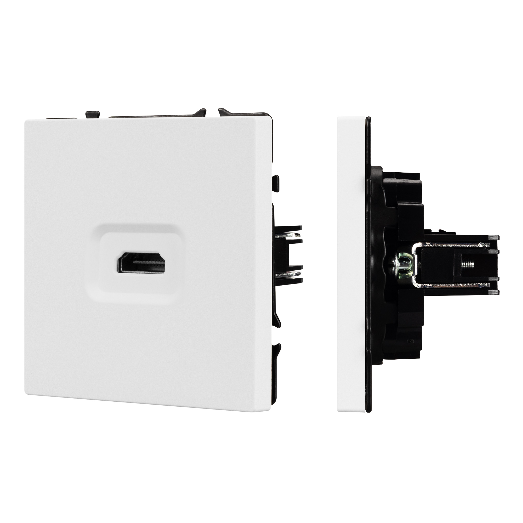 Механизм HDMI розетки на 1 пост. Цвет - белый кварц, с Soft-Touch покрытием. Без декоративной рамки. Уровень пылевлагозащиты IP20. Тип подключаемого разъема - HDMI (m). Розетка устанавливается в стандартный подрозетник круглого сечения диаметром 60мм. Габаритные размеры: длина 71 мм, ширина 71 мм, высота 42 мм. Гарантийный срок 10 лет.