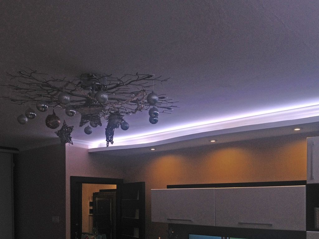 Декоративная закарнизная подсветка в квартире добавит новые нотки в интерьер. Применение многоцветной светодиодной ленты arlight® и RGB контроллера arlight® дает возможность добавить новые краски и подстроить обстановку под настроение.