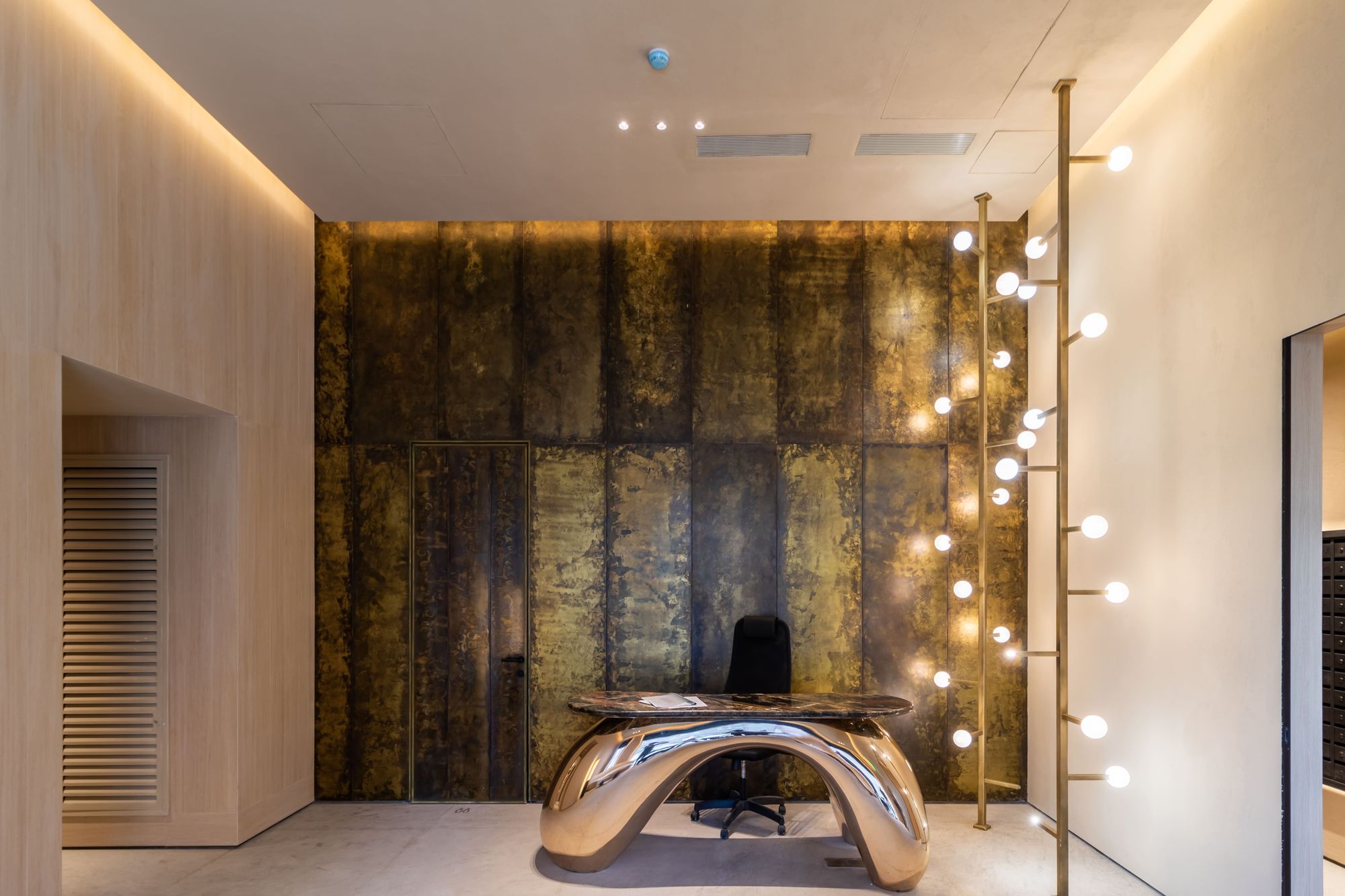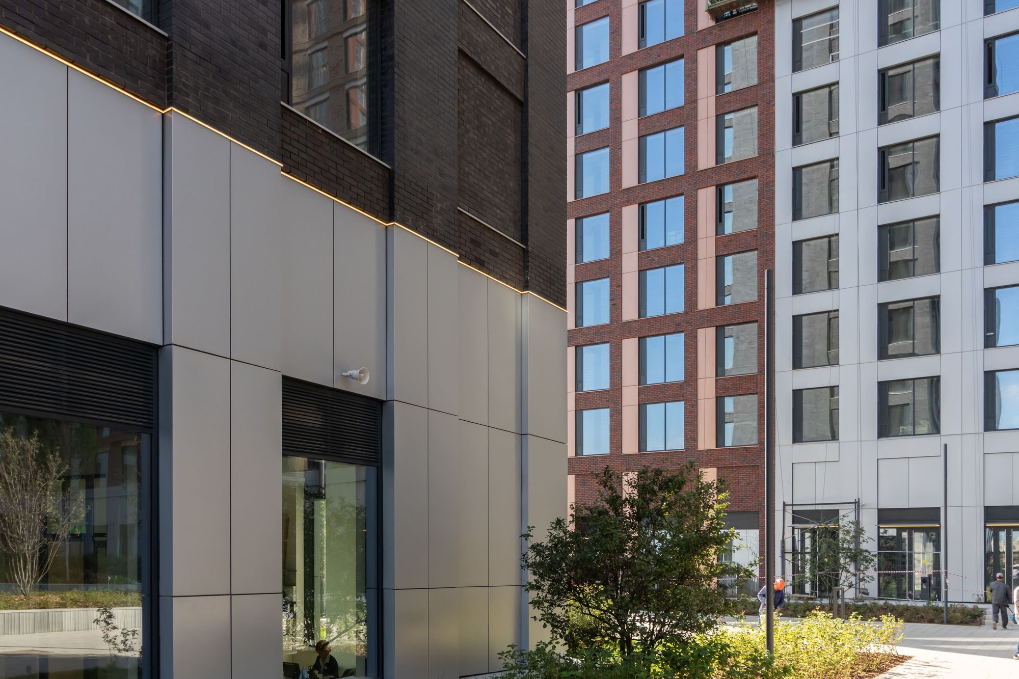 Освещение лобби функционирует по природным часам. В восьми корпусах жилого комплекса специалисты Arlight применили различные световые сценарии на основе системы DALI. С восходом солнца встроенные в потолок светильники включаются на 100%, а закарнизная подсветка — на 30%. После заката, наоборот, яркость закарнизной подсветки возрастает до 100%, а яркость потолочных светильников снижается до 30%. Также возможно управление освещением вручную с помощью панелей DALI.