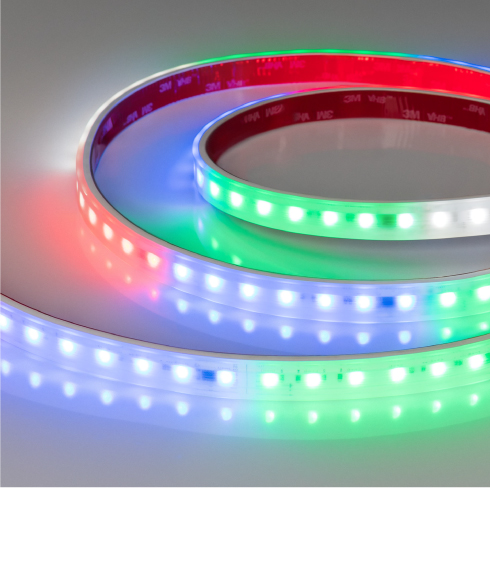 DMX B70 — лента с RGBW-свечением. В серии представлен стандартный ассортимент оттенков белого канала: 3000, 4000, 6000 К.