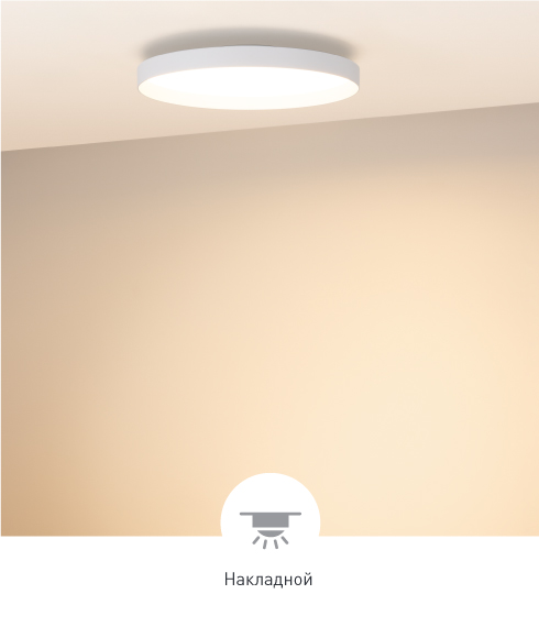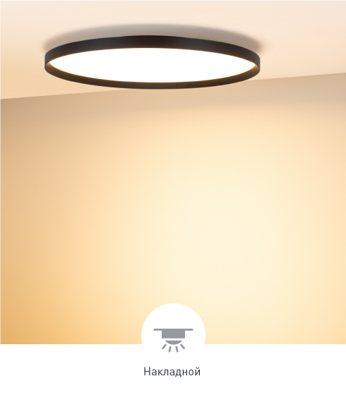 Гибкость в выборе модели В серии представлены следующие варианты размеров световой части светильника: Ø350×70 мм, Ø450×70 мм, Ø600×73 мм, Ø800×73 мм.