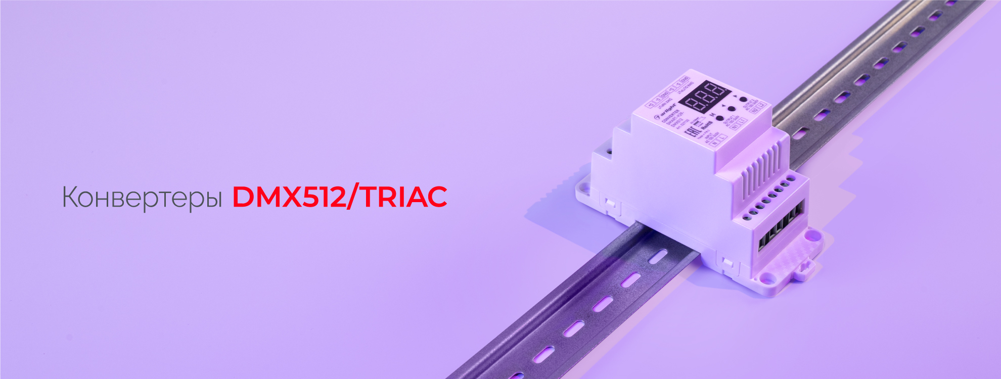 Конвертеры предназначены для управления яркостью, включением и отключением источников света с напряжением питания AC 230 В (светодиодных диммируемых ламп, диммируемых светодиодных светильников, ламп накаливания, галогенных ламп) посредством протокола управления DMX512. Диммирование выполняется с использованием метода TRIAC.