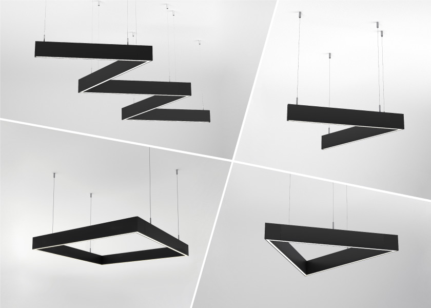 Готовые подвесные светильники-фигуры из линейных светильников LINEAIR: треугольник, квадрат, прямоугольник, зигзаг, угол. Высокая световая эффективность, возможность диммирования и создания комфортного отраженного освещения. В комплекте набор для подвеса и кабель 1.5 м. Светильник поставляется в разобранном виде.