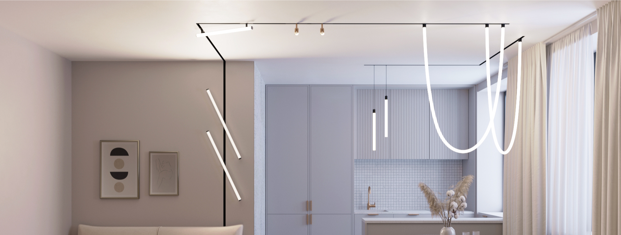 Корпус представлен в черном и белом цвете и длиной 600 и 900 мм. Удобное и надежное крепление в треке магнитами.