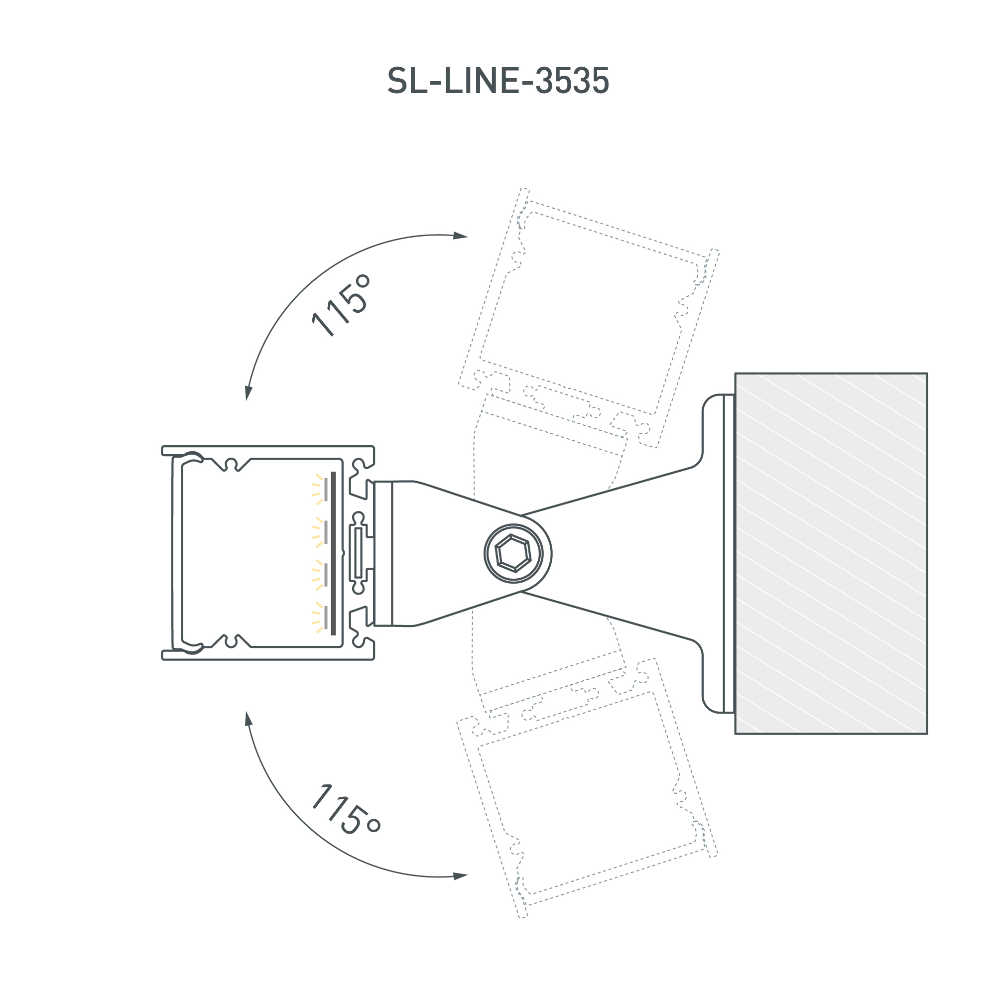 Габаритные размеры профиля составляют 2500 мм в длину, 35 мм в ширину и 35 мм в высоту. Площадка для установки светодиодных лент позволяет использовать ленту шириной до 31 мм и мощностью до 36,7 Вт/м. Это обеспечивает гибкость в выборе светодиодных лент и создает потрясающие световые решения.
