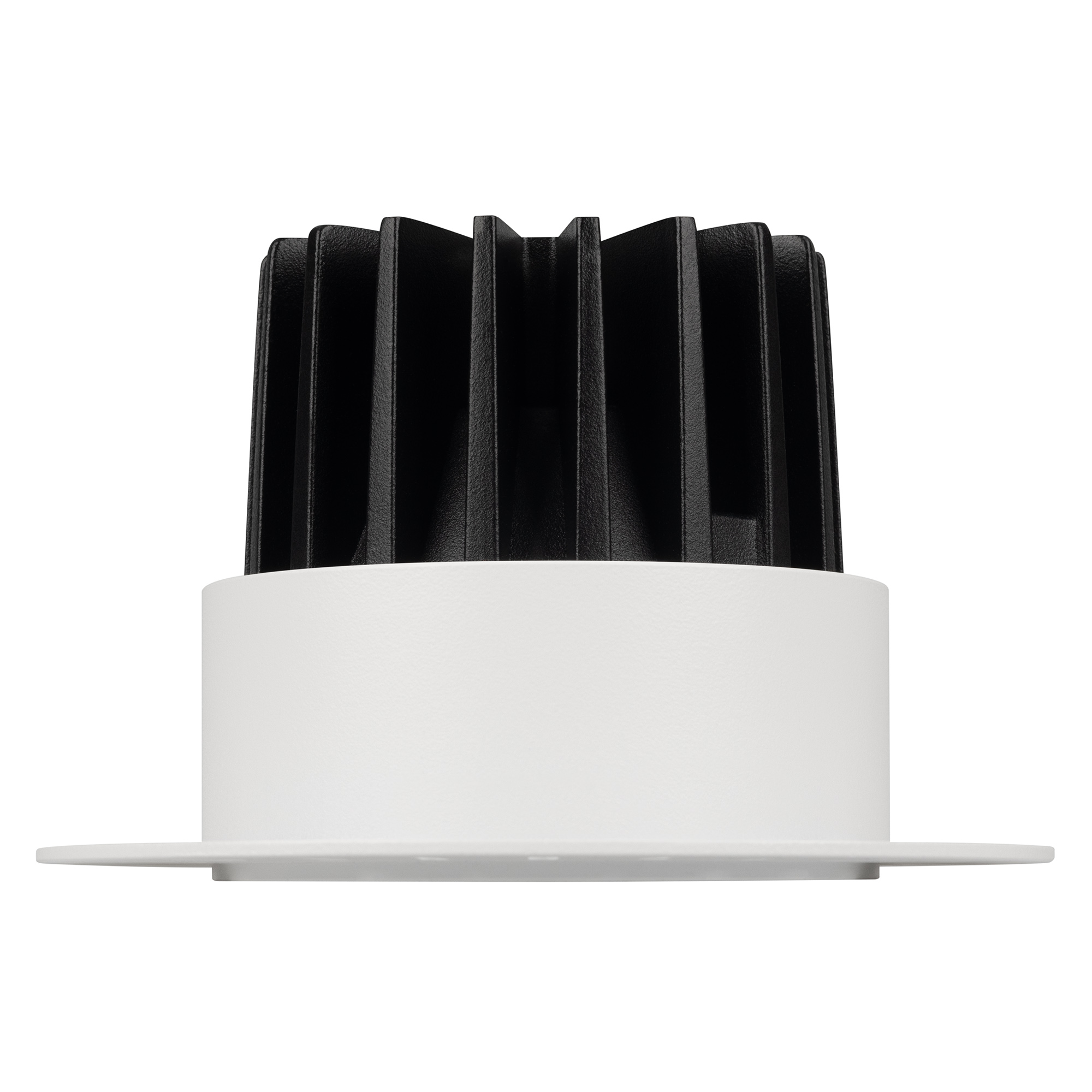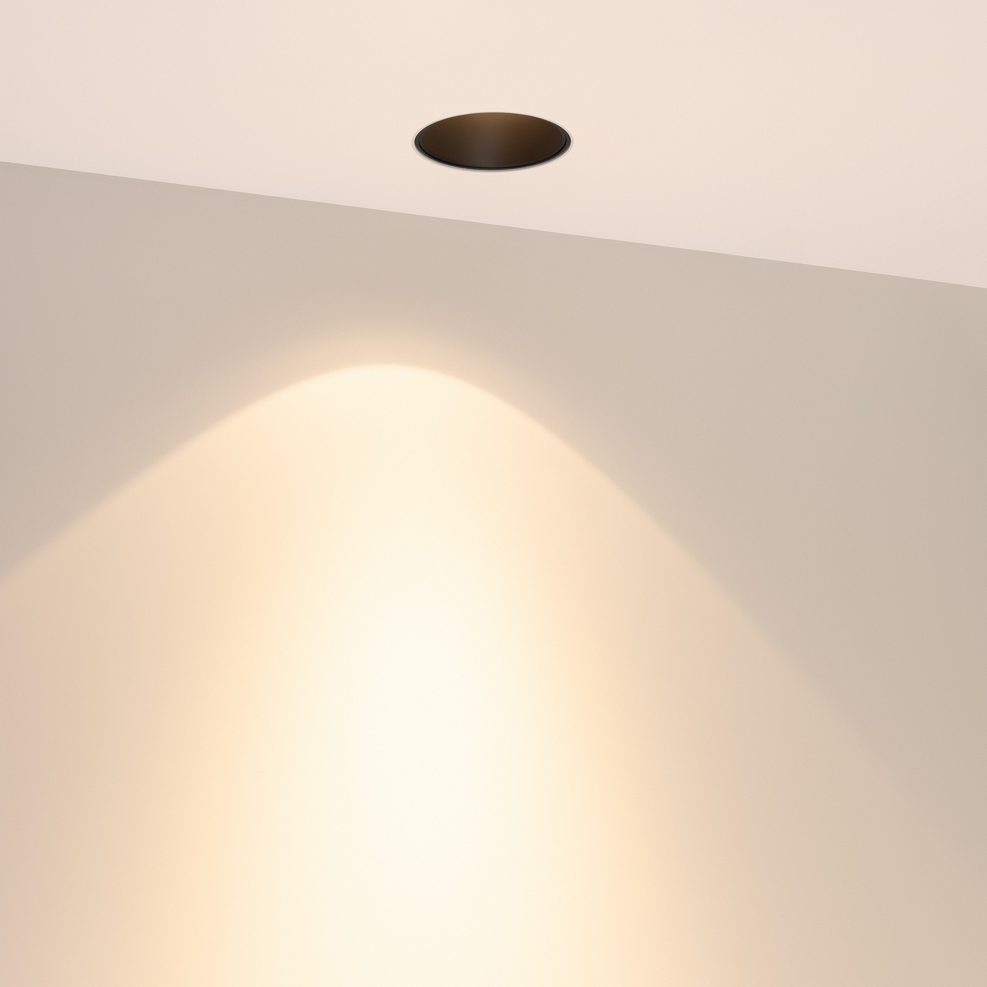 Встраиваемый безрамочный светильник под шпаклевку. Мощность 12 Вт, св. поток 890 лм, 75 лм/Вт, тёплый 3000 K, CRI>90, угол 32°, напряжение питания 230 В. Чёрный круглый корпус из алюминия, черный МАТОВЫЙ отражатель из PMMA, степень защиты IP20. Размер: диаметр 110 мм, высота 70 мм. Монтаж встраиваемый, установочное отверстие диаметр 85 мм. Драйвер 20-40 В, 300 мА, пульсация <2%.
