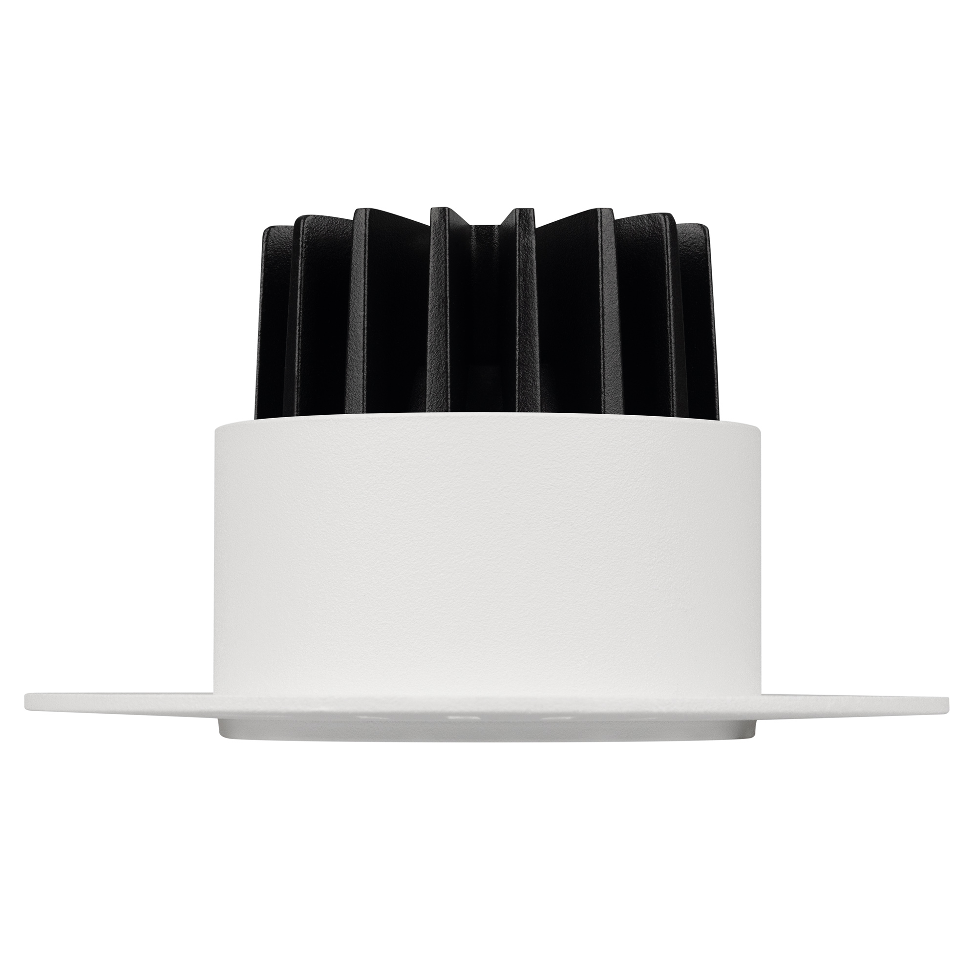 Встраиваемый безрамочный светильник под шпаклевку. Мощность 6.3 Вт, св. поток 455 лм, 72 лм/Вт, тёплый 3000 K, CRI>90, угол 40°, напряжение питания 230 В. Чёрный круглый корпус из алюминия, черный МАТОВЫЙ отражатель из PMMA, степень защиты IP20. Размер: диаметр 90 мм, высота 52 мм. Монтаж встраиваемый, установочное отверстие диаметр 65 мм. Драйвер 28-42 В, 150 мА, пульсация <2%.