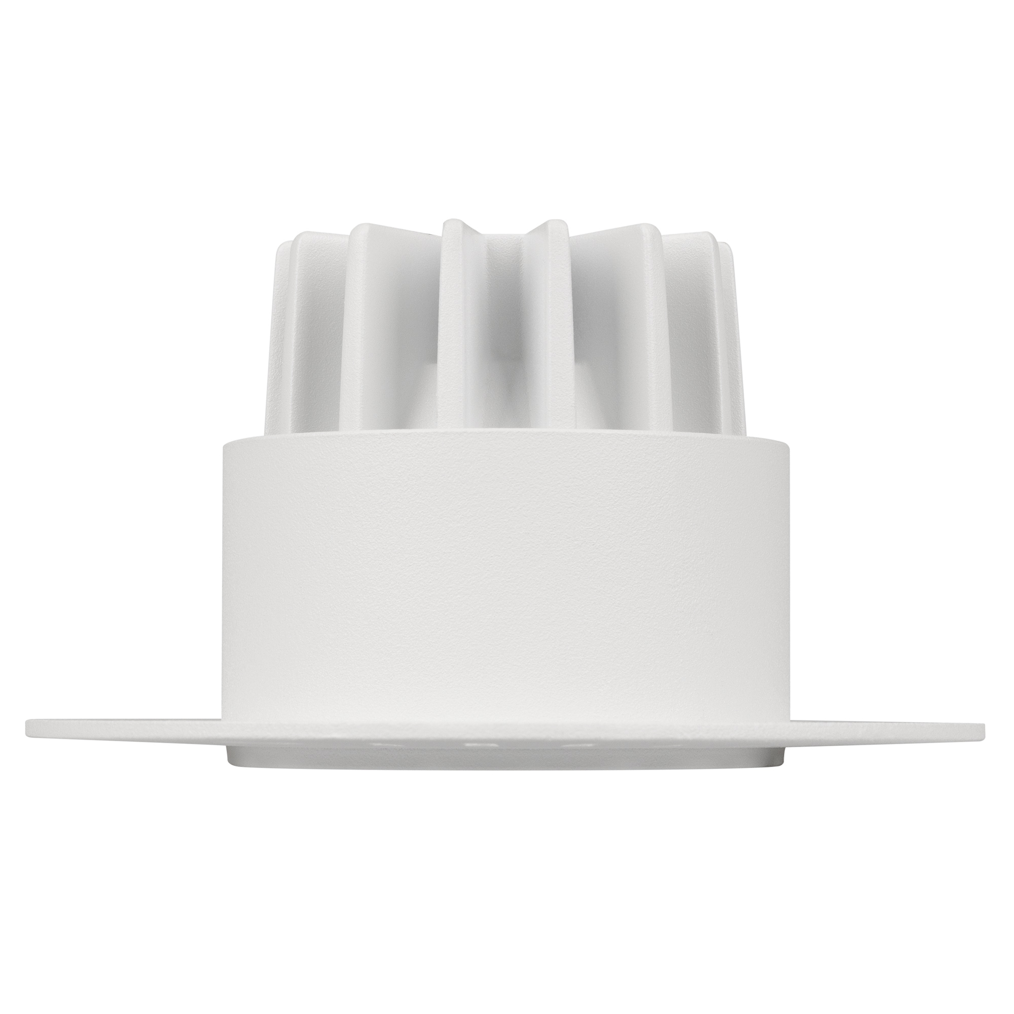 Встраиваемый безрамочный светильник под шпаклевку. Мощность 6.3 Вт, св. поток 578 лм, 86 лм/Вт, дневной 4000 K, CRI>90, угол 40°, напряжение питания 230 В. Белый круглый корпус из алюминия, белый МАТОВЫЙ отражатель из PMMA, степень защиты IP20. Размер: диаметр 90 мм, высота 52 мм. Монтаж встраиваемый, установочное отверстие диаметр 65 мм. Драйвер 28-42 В, 150 мА, пульсация <2%.