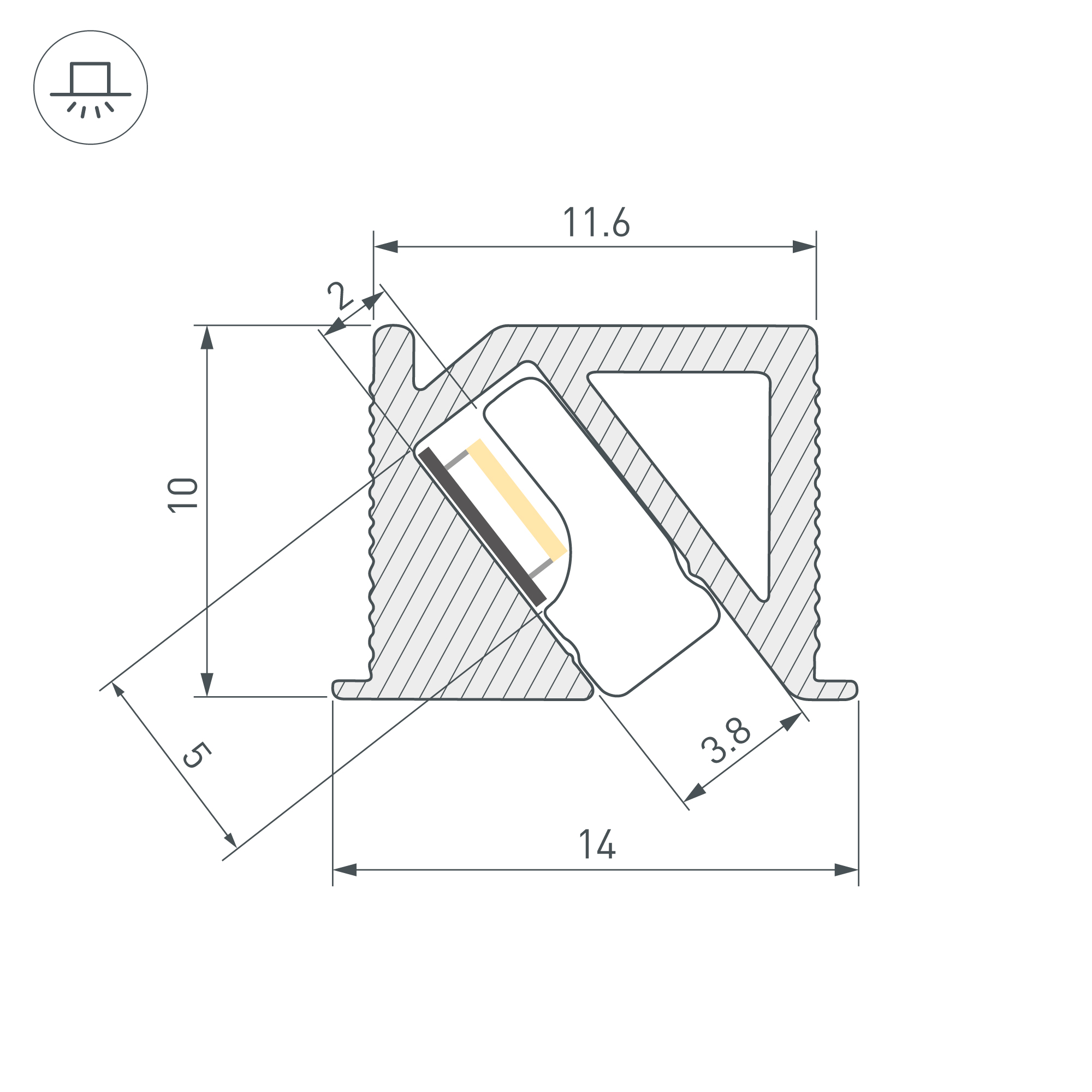 Встраиваемый профиль с накладным фланцем черного цвета из анодированного алюминия для подсветки мебели, пазов, ниш и других элементов интерьера. Габаритные размеры профиля составляют 2000 мм в длину, 14 мм в ширину и 10 мм в высоту. Площадка для установки светодиодных лент позволяет использовать ленту шириной до 5 мм и мощностью до 15,14 Вт/м. Это обеспечивает гибкость в выборе светодиодных лент и создает потрясающие световые решения.