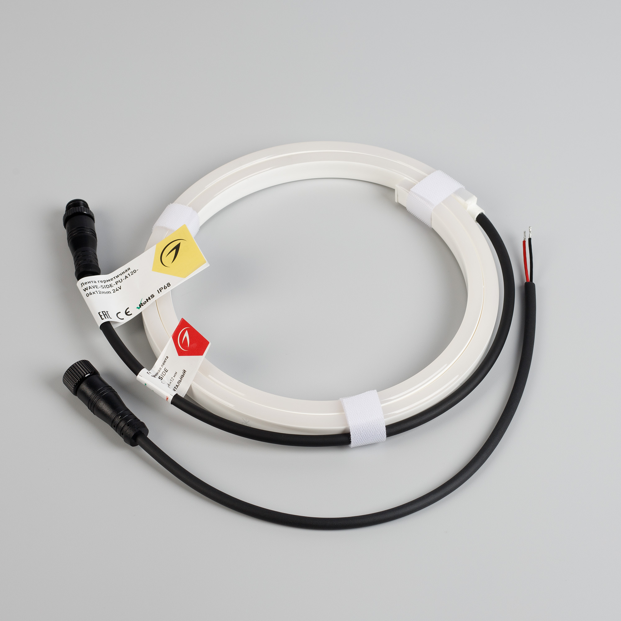 Светодиодная лента герметичная WAVE-SIDE-PU-A120-06x12mm 24V Warm3500 (8 W/m, IP68, 1m, wire x1) (Arlight, Вывод прямой, 3 года)
