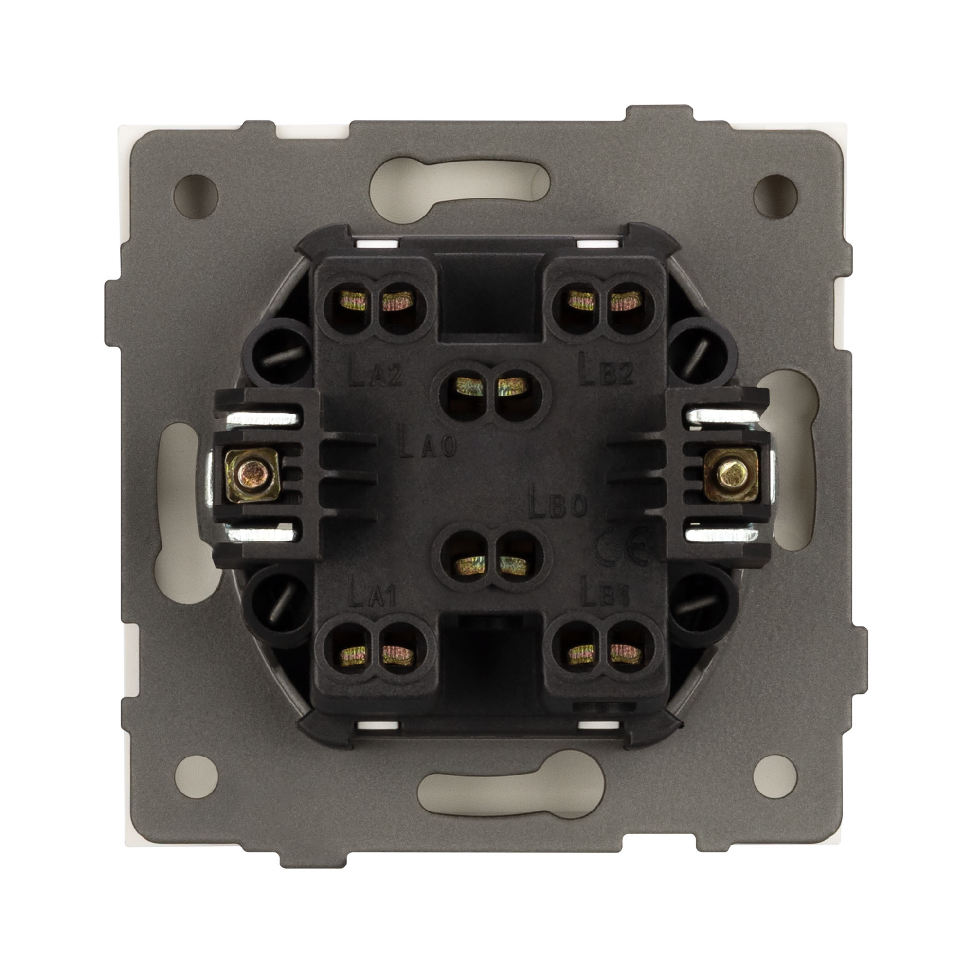 Контактная часть присоединяется при помощи винтовых зажимов, позволяя надежно подсоединить механизм выключателя к питающим элементам. А усиленные распорные лапки двойного захвата надежно фиксируют механизм в установочном подрозетнике круглого сечения диаметром 60мм.