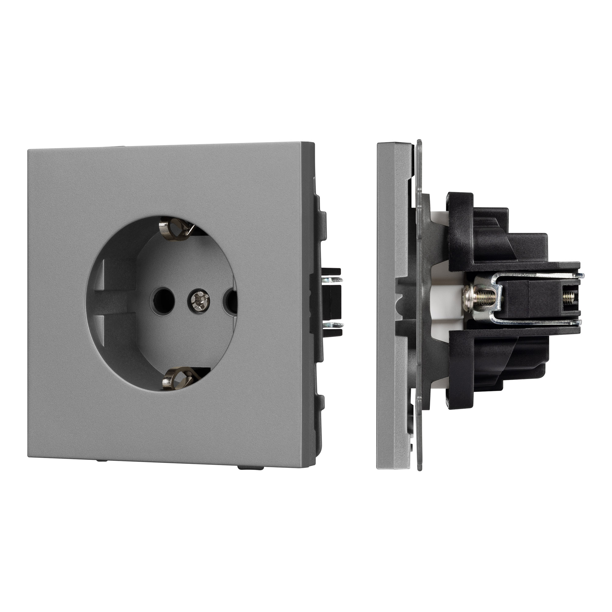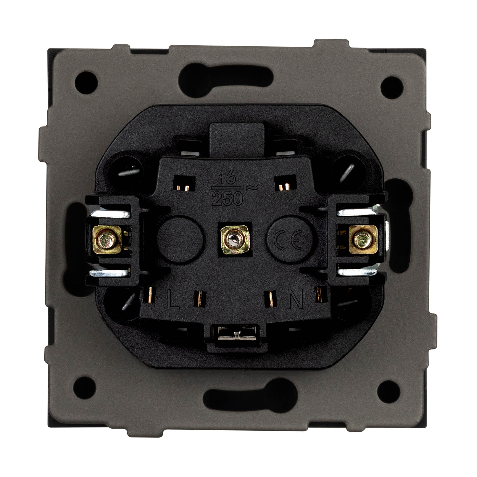Механизм розетки с заземление совместим с рамками серии TENDO, создает утонченный минималистичный вид. Скрытый тип монтажа позволяет гармонично встроить в интерьер любого современного дизайн-проекта. Видимая часть механизма выполнена из высококачественного пластика серого цвета и имеет матовое покрытие.