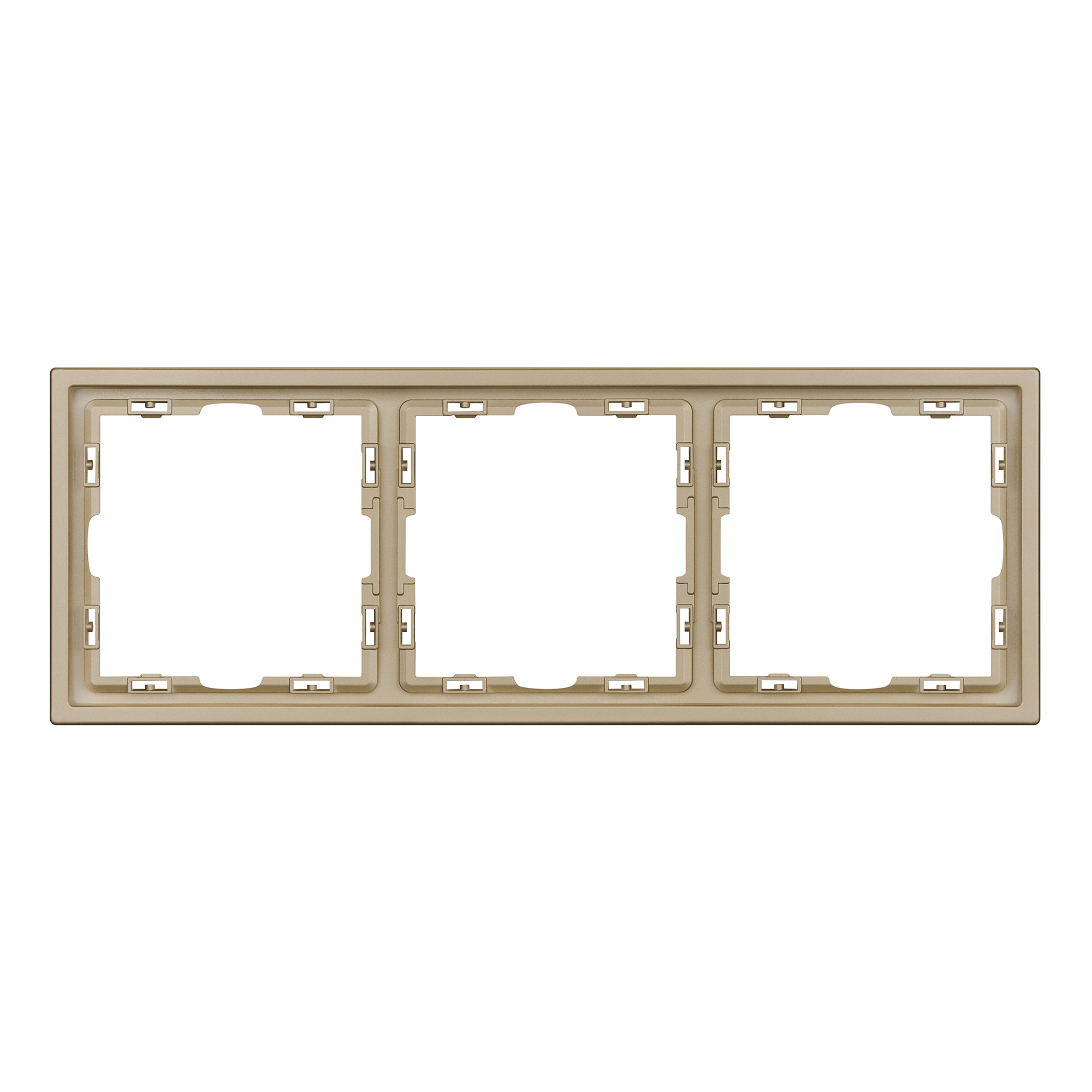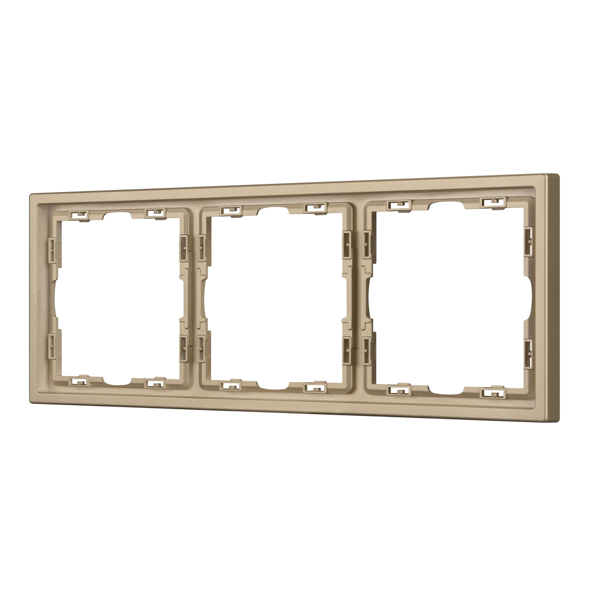 Корпус рамки выполнен в золотом цвете и имеет покрытие Soft-Touch, что придает изделию приятные тактильные свойства. Толщина корпуса составляет 8,5 мм, что позволяет эффективно интегрировать рамку в интерьерные решения любого уровня сложности.