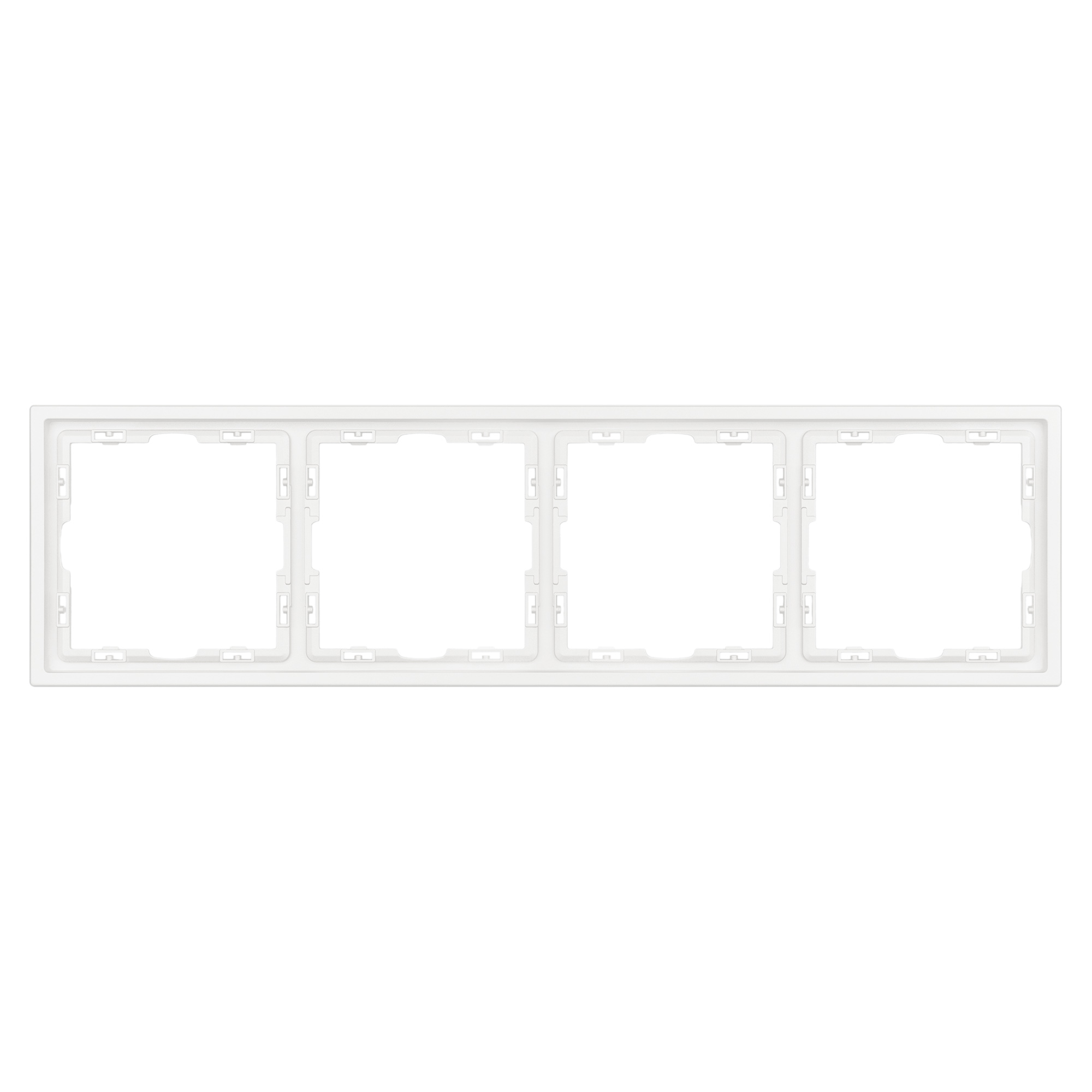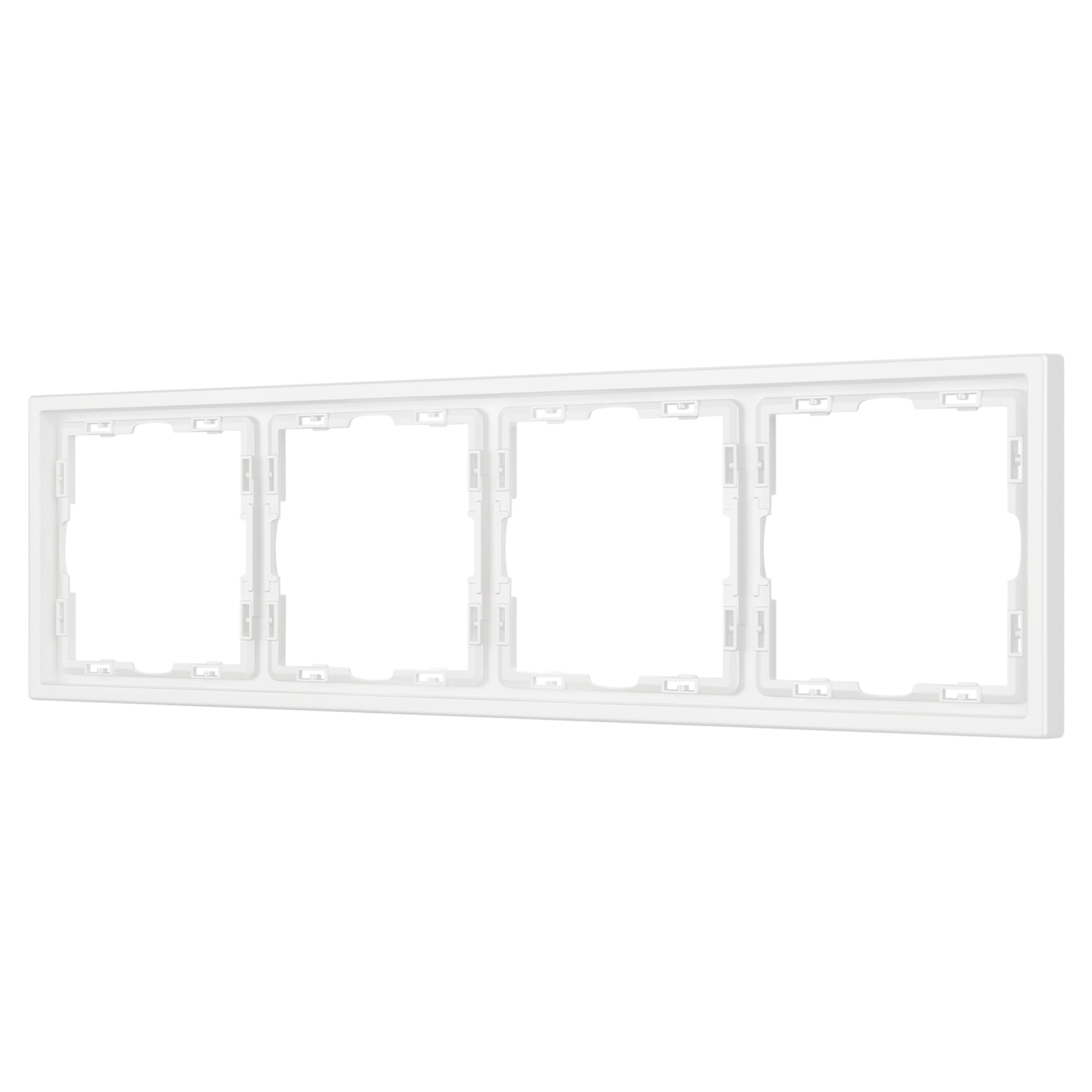 Рамка пластиковая на 4 поста, под встраиваемый механизм. Цвет - белый, с Soft-Touch покрытием. Среднего уровня герметичности IP20. Ориентация монтажа горизонтальная. Габаритные размеры: длина 294 мм, ширина 81 мм, высота 8,55 мм. Гарантийный срок 12 мес.