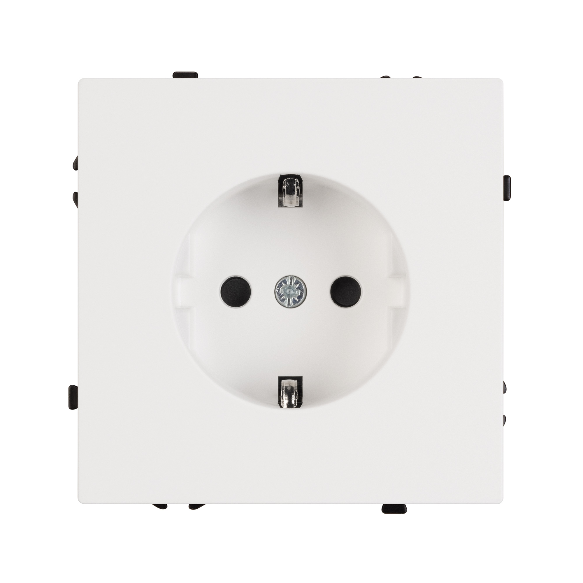 Строгие геометрические линии гармонично сочетаются с функциональностью продуманных механизмов, создавая идеальное решение для дизайн-проектов, где важны как эстетика, так и практичность. Механизм розетки с заземлением совместим с рамками серии NOBE, создает утонченный минималистичный вид. Скрытый тип монтажа позволяет гармонично встроить в интерьер любого современного дизайн-проекта. Видимая часть механизма выполнена из высококачественного пластика белого цвета и имеет Soft-Touch покрытие, что придает изделию приятные тактильные ощущения и стильный внешний вид. Розетка оснащена заземляющими контактами и защитными шторками, обеспечивая надежное и безопасное подключение электроприборов. Соединение посредством быстрозажимных контактов, позволяет надежно подсоединить механизм розетки к питающим элементам, минимизируя затраченное время на монтаж. А усиленные распорные лапки двойного захвата надежно фиксируют механизм в установочном подрозетнике круглого сечения диаметром 60мм. Суппорт окрашен в черный матовый цвет под основу механизма и выполнен из металла толщиной 1,5мм, что обеспечивает безопасность и уверенность в установке. На каждой стороне суппорта размещены фиксирующие элементы, позволяющие комбинировать механизмы в системы до 5шт как горизонтально, так и вертикально.