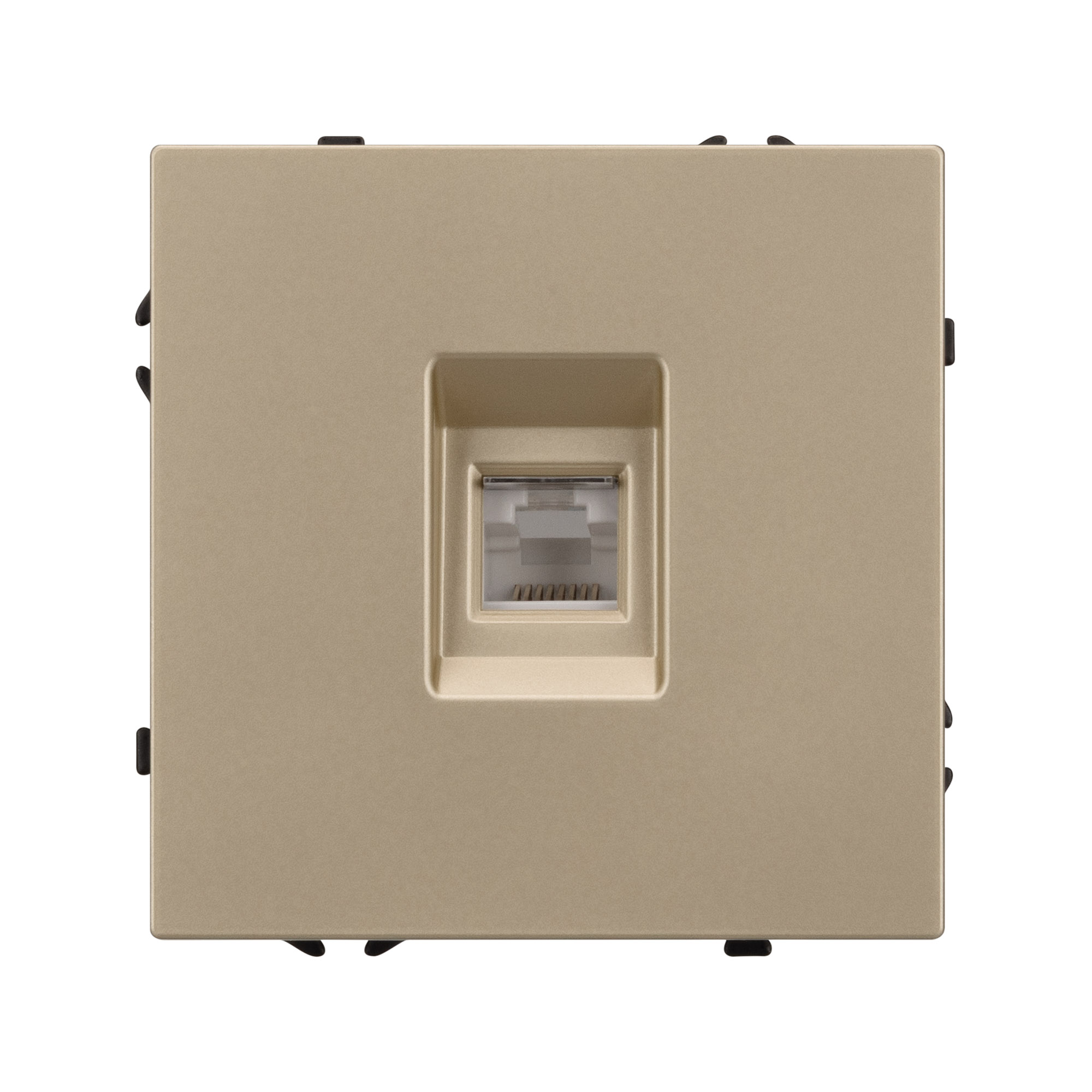 Механизм компьютерной розетки на 1 пост 6-й категории. Цвет - золотой, с Soft-Touch покрытием. Без фронтальной рамки. Уровень пылевлагозащиты IP20. Тип подключаемого разъема - RJ45. Розетка устанавливается в стандартный подрозетник круглого сечения диаметром 60мм. Габаритные размеры: длина 71 мм, ширина 71 мм, высота 42 мм. Гарантийный срок 10 лет.