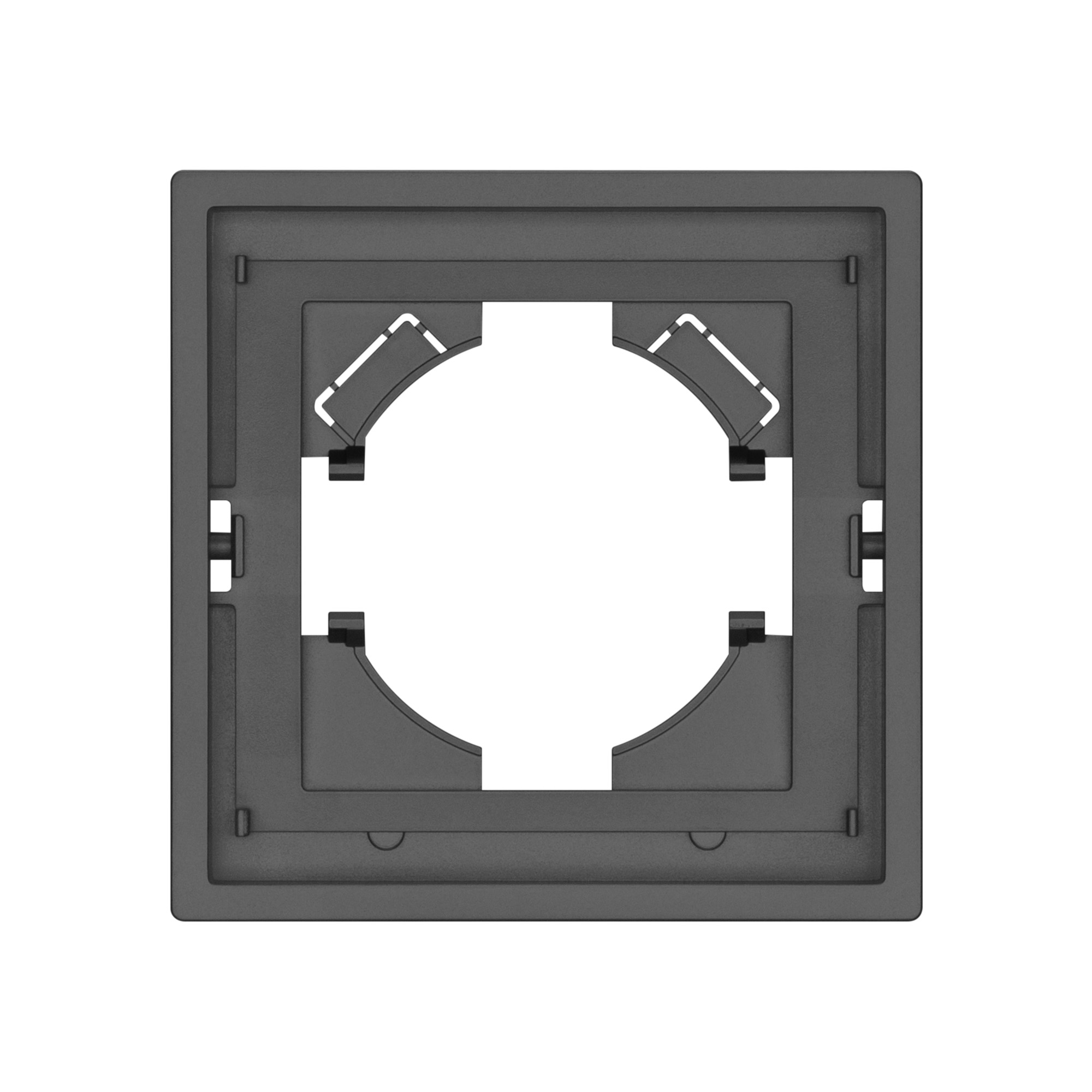 Корпус рамки выполнен в сером цвете и имеет покрытие Soft-Touch, что придает изделию приятные тактильные свойства. Высота рамки составляет 9 мм, что позволяет эффективно интегрировать рамку в интерьерные решения любого уровня сложности.