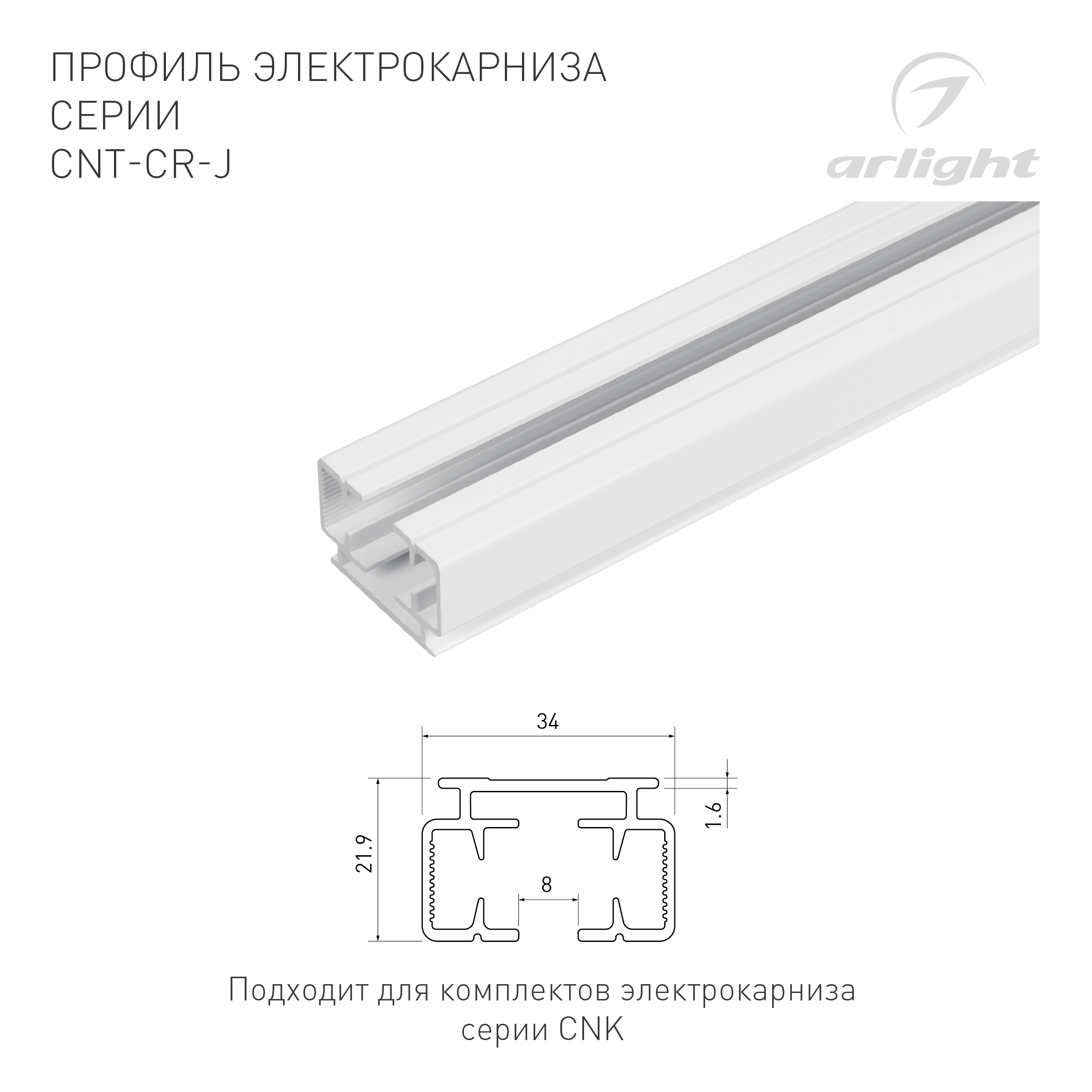 Профиль электрокарниза CNT-CR-J-1m (Arlight, Алюминий)