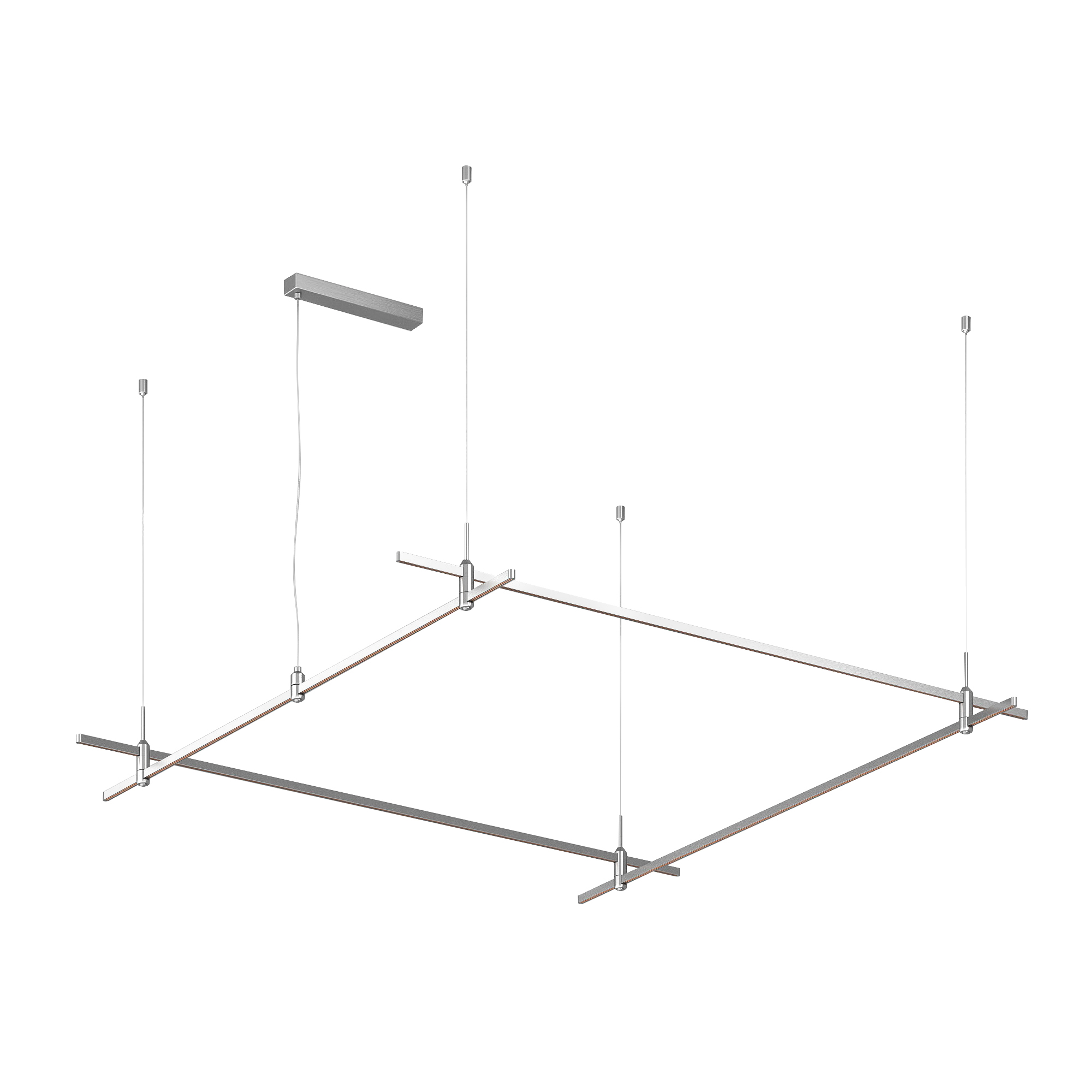 Подвесная конструкция APRIORI, форма прямоугольник. В комплекте треки с аксессуарами и гибкими подвесами длиной 1500мм Размер ДxШxВ: 3000x3000x22мм. Монтируется подвесным способом. Шинопровод рассчитан на работу с безопасным напряжением DC48В. Изготавливается из алюминия, анодированного в цвет титан. Светильники и источники питания приобретаются отдельно.