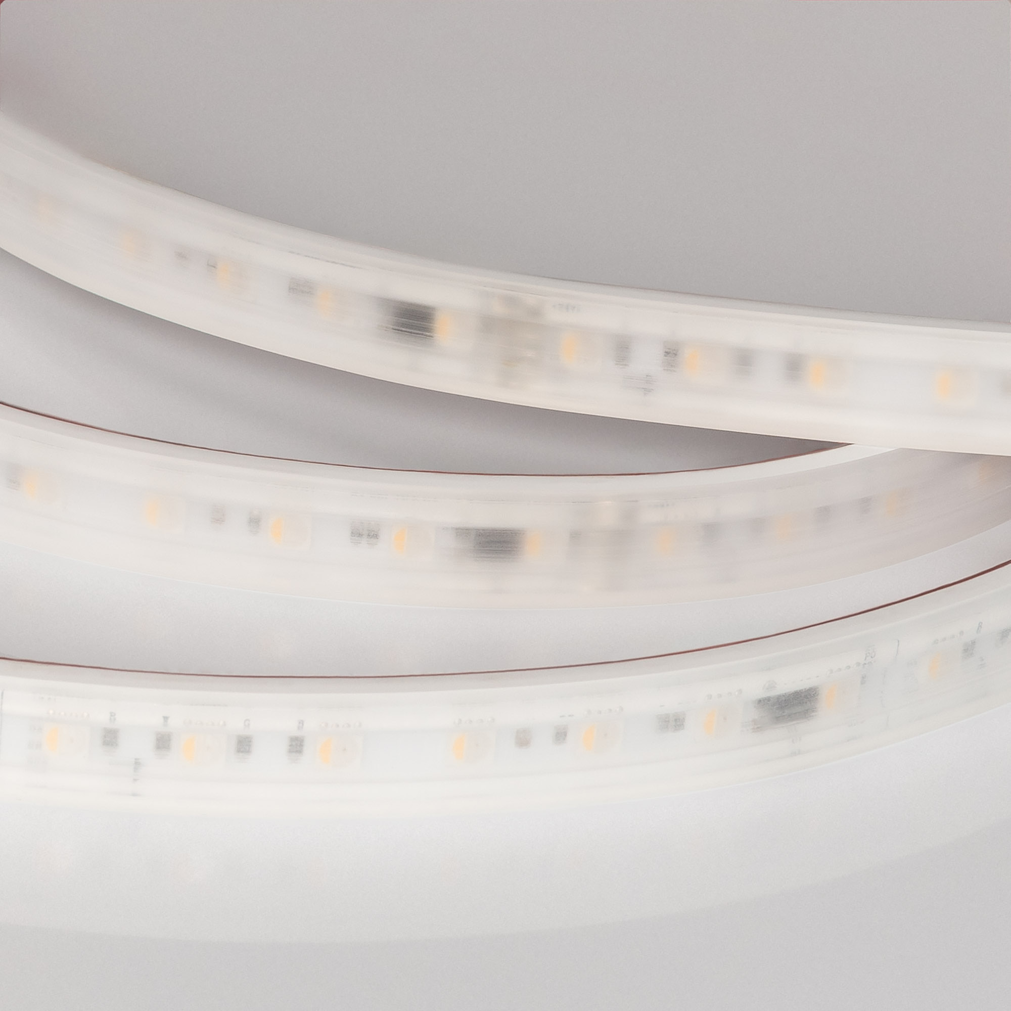Поставка под заказ от 100 м. Светодиодная герметичная лента DMX серии B70, IP67 (PS - силиконовая экструзия), микросхема SM18522PS. Светодиоды SMD 5060, 70 шт/м, 10 pixels на 1м (50 pixels на 5 м), 1 pixel = 7 LED, белая плата шириной 12 мм, скотч 3М. Цвет RGB+ БЕЛЫЙ 6000K, индекс цветопередачи CRI>90, угол 120°. Питание 24 В, мощность 17 Вт/м (85 Вт на 5 м). Размеры 5000x14.5x6 мм. Мин.отрезок 100 мм, 7 светодиодов. Цена за 1м.