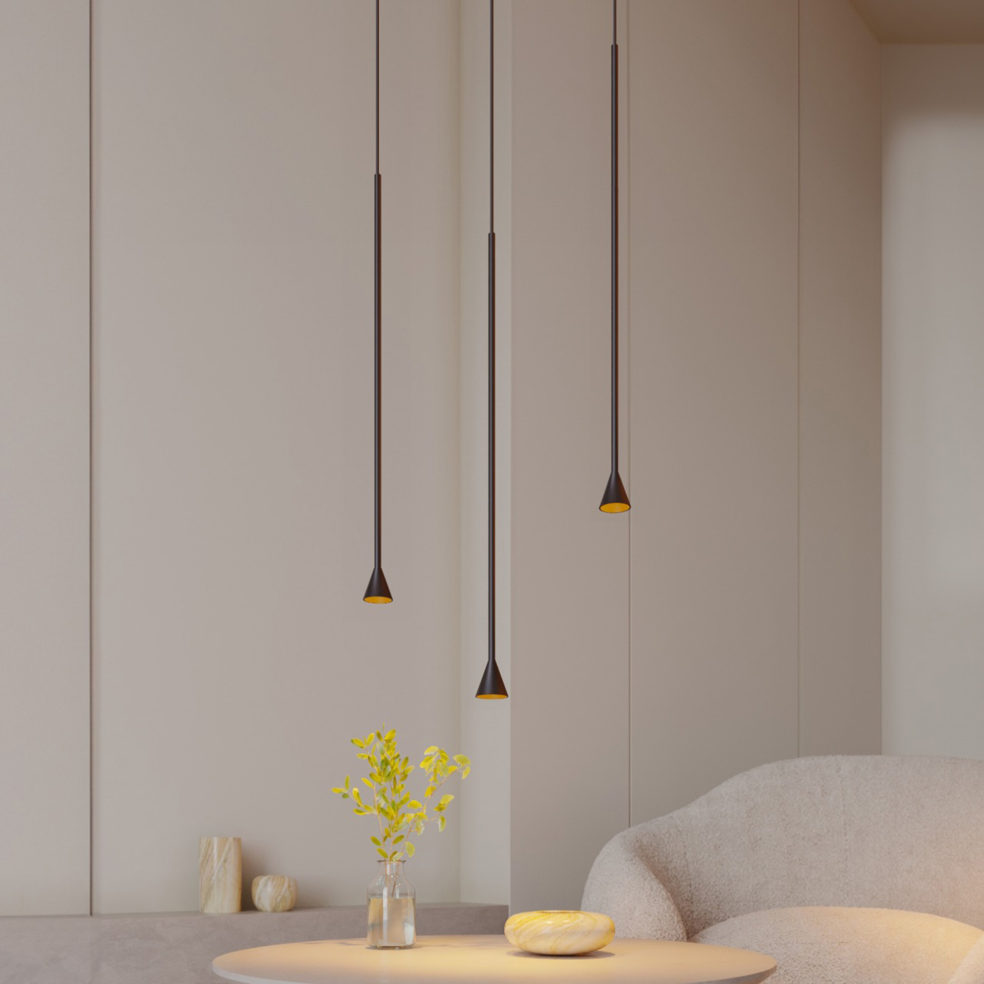 Подвесной светодиодный светильник RINAR-HANG мощностью 5 Вт, теплого цвета свечения 3000 K предназначен для направленного декоративного освещения в жилых или коммерческих помещениях. Светильник с узким углом излучения 36 градусов оригинально дополнит интерьеры кухни-гостиной или зала кафе, ресторанов. Максимальная длина регулируемого подвеса 1500 мм. Подключение осуществляется с помощью входящего в комплект драйвера напрямую к сети переменного тока 230 В. Индекс CRI>94 отвечает за отличное восприятие и передачу цветовых оттенков. Низкая пульсация обеспечивает комфортное освещение без мерцания. Алюминиевый корпус с конусообразным светоизлучаетем. Пылевлагозащита на уровне IP20 позволяет применять модель внутри помещений, где нет контакта с водой или другими жидкостями.