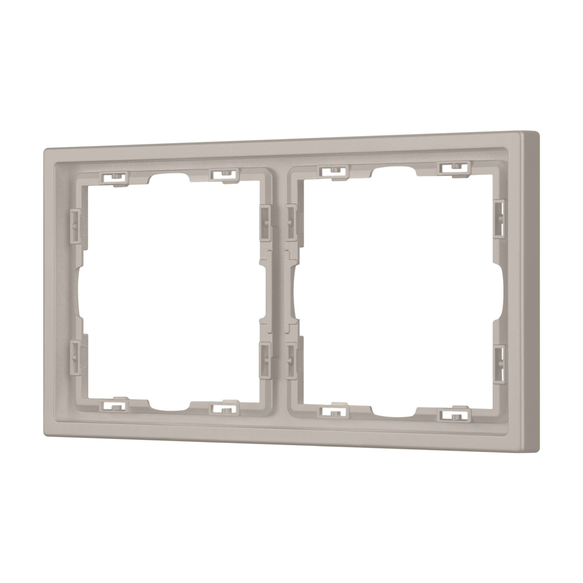 Корпус рамки выполнен в цвете кашемир и имеет покрытие Soft-Touch, что придает изделию приятные тактильные свойства. Толщина корпуса составляет 8,5 мм, что позволяет эффективно интегрировать рамку в интерьерные решения любого уровня сложности.