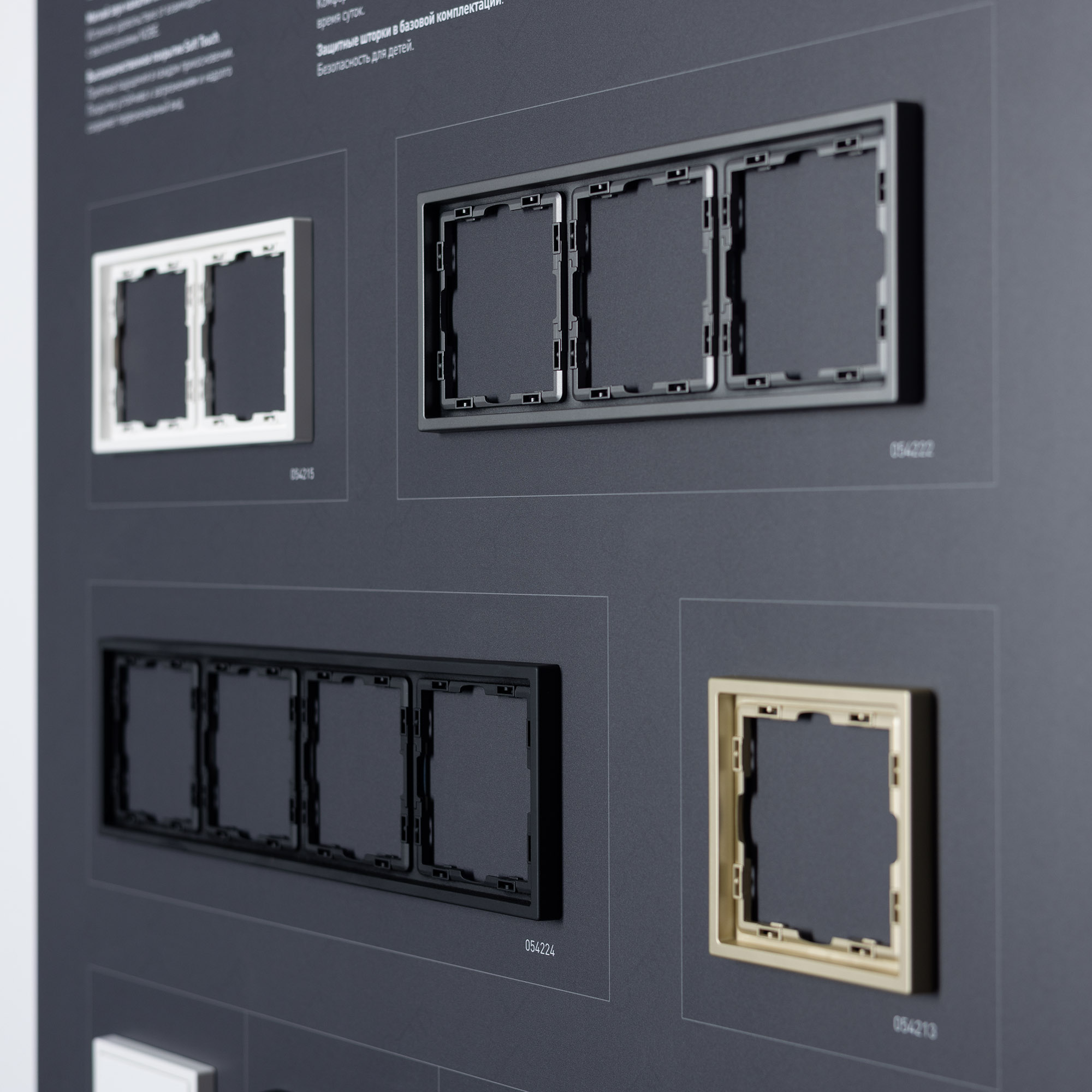 На стенде представлены выключатели и розетки серии Nobe и Omali