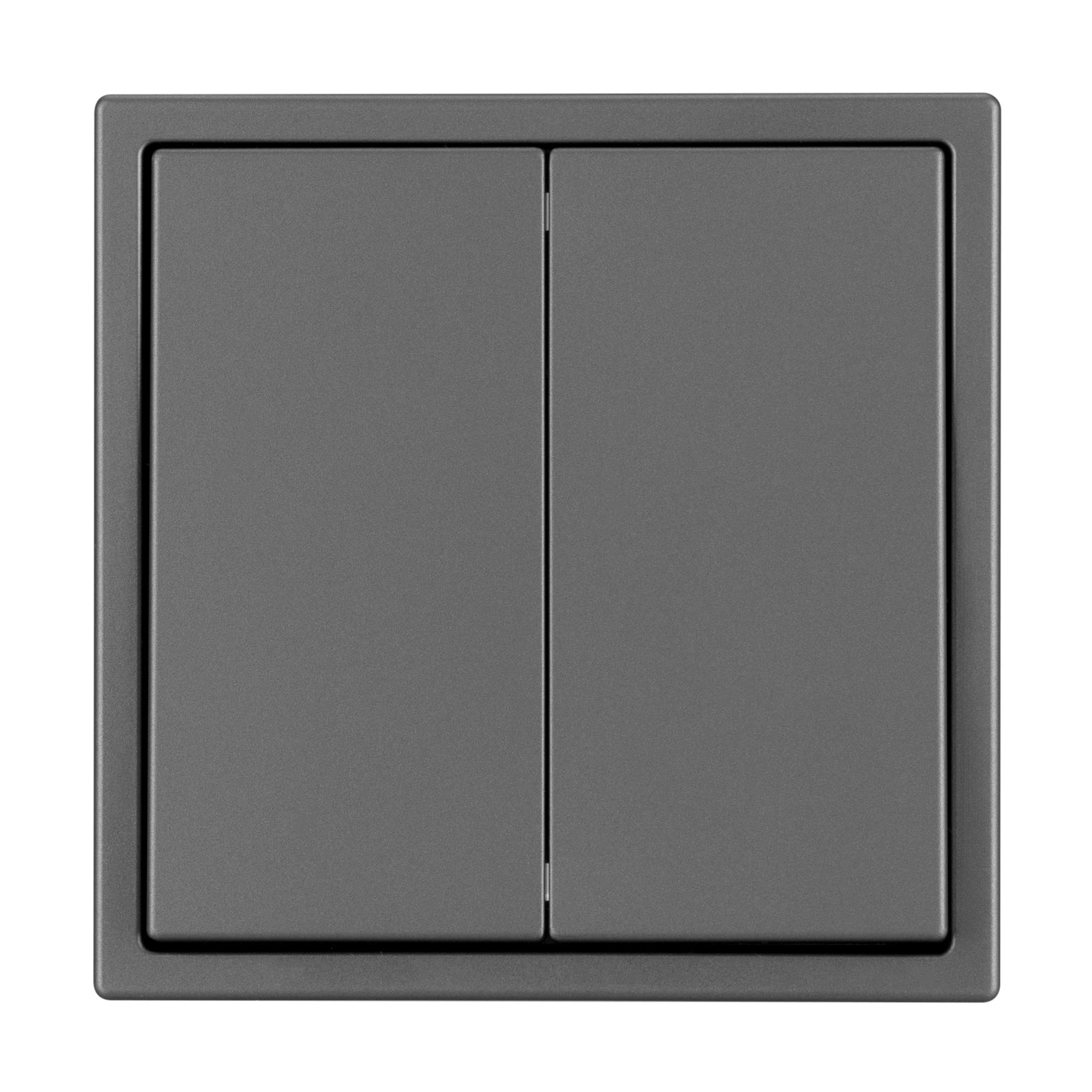 Механизм выключателя света клавишный на 1 пост 2 клавиши (перекрёстный). Цвет - серый базальт, с Soft-Touch покрытием. Без фронтальной рамки. Уровень пылевлагозащиты IP20. Выключатель устанавливается в стандартный круглый подрозетник круглого сечения диаметром 60мм. Габаритные размеры: длина 71 мм, ширина 71 мм, высота 52 мм. Гарантийный срок 10 лет.