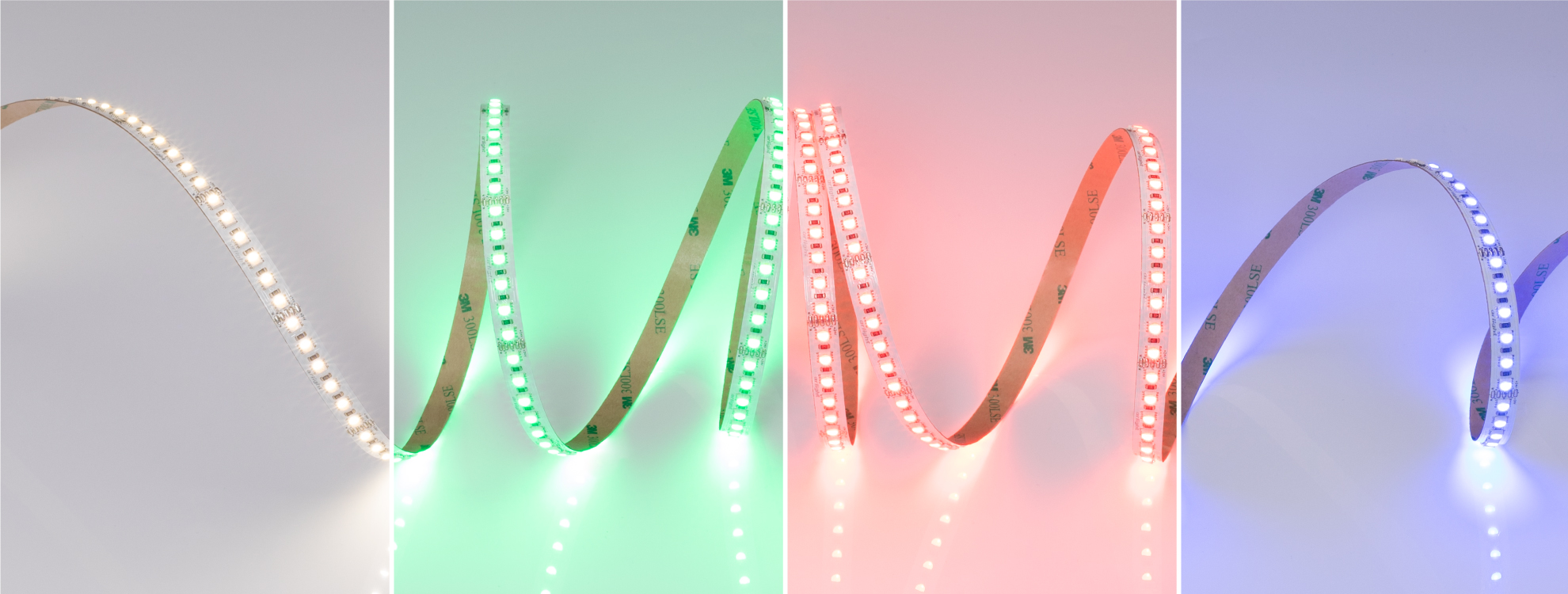 Каждый светодиод имеет 4 канала свечения (RGB и канал белого цвета), что делает свечение подсветки более однородным по всей длине ленты.