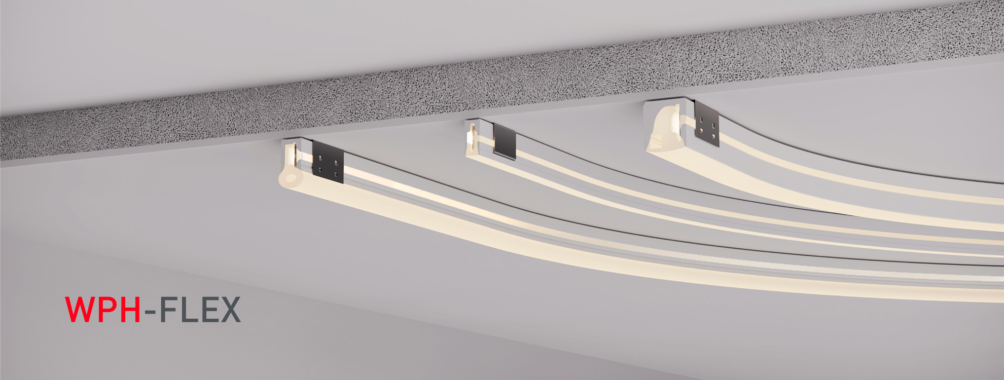 Сечение разных форм В серии WPH FLEX вы найдете профили с прямоугольной и круглой формой сечения. Ассортимент прямоугольных профилей представлен моделями с разными размерами сечения, возможностью вертикального изгиба (TOP), горизонтального (SIDE), а также 2-в-1 с возможностью изготовлении скрученных форм TWIST. Гибкие круглые профили со свечением 360° имеют диаметр 22 и 40 мм. Модели с диаметром 22 мм представлены не только в белом и черном цвете, но и в оплетке из нейлоновой нити.