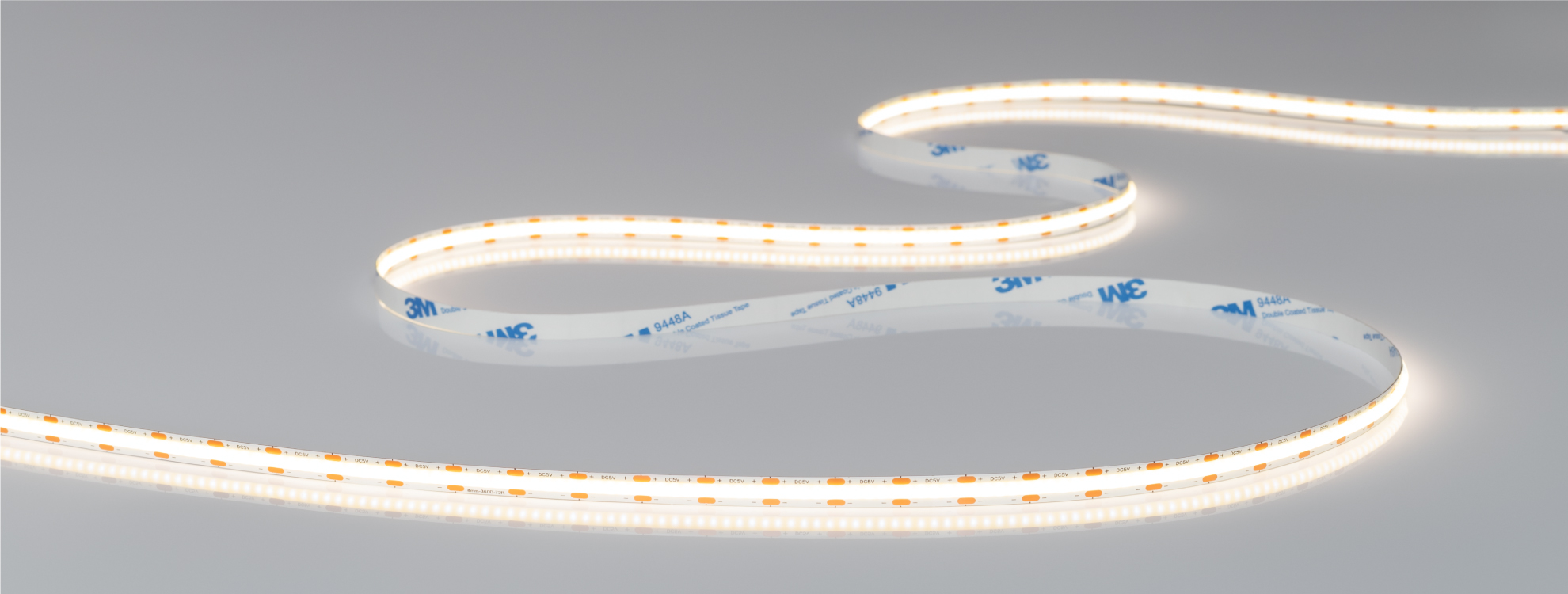 За счет заливки люминофором по всей длине ленты образуется равномерное свечение без видимых точек светодиодов даже без применения рассеивающих экранов.