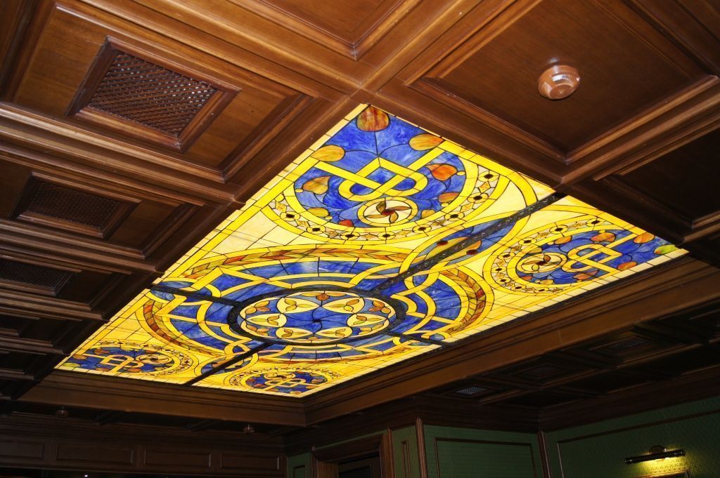 В клубе установлены наборные и пескоструйные витражи, которые, благодаря грамотно организованной равномерной подсветке, предстают во всей своей яркости и безупречной красоте. С помощью светодиодного оборудования был сымитирован естественный свет, витражи при таком освещении смотрятся максимально выигрышно!