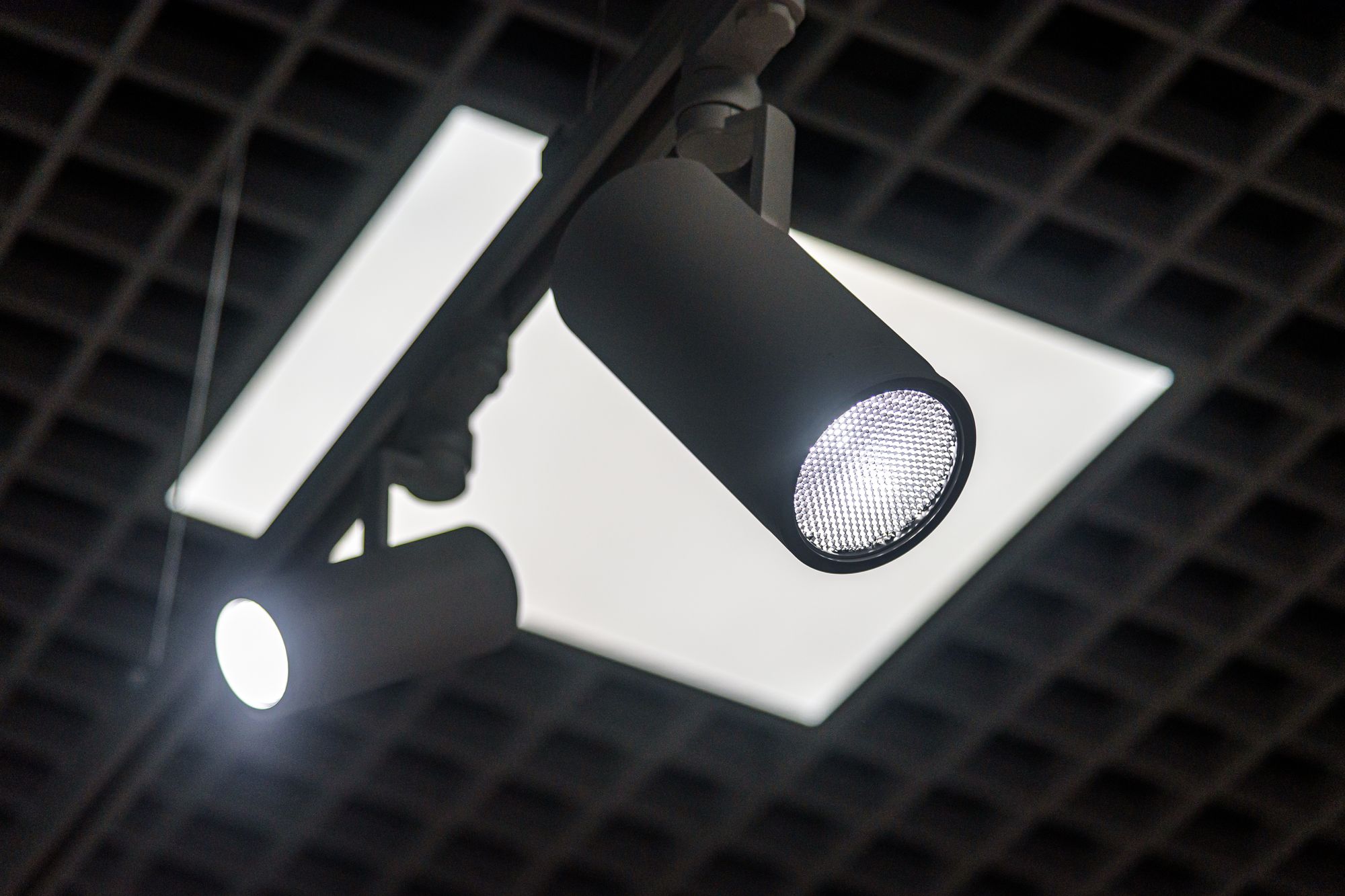 Особенностью проекта является многофункциональность: в рамках единого пространства было необходимо создать комфортную и удобную световую среду для проведения любых мероприятий, презентаций и выставок. Дизайнерская задумка реализована с помощью трековых светильников с регулируемым углом излучения. Основная потолочная подсветка создана с помощью светодиодных панелей с изменяемой цветовой температурой. В выставочных помещениях важна быстрая смена световых акцентов, поэтому трековые светильники, которые свободно перемещаются вдоль шины — идеальное решение. Для подсветки внешних оконных витрин используются накладные прожекторы, создающие оригинальную декоративную подсветку картин.
