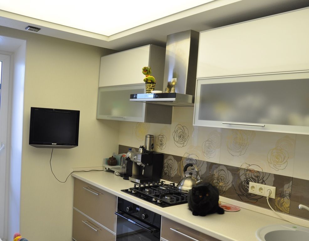 В проекте реализована два варианта освещения. Первый вариант равномерная подсветка натяжного потолка светодиодной лентой