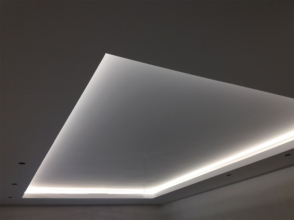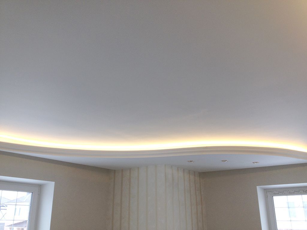 В одном из помещений была использована многоцветная RGB светодиодная лента Arlight, цвет и яркость которой можно выбирать с помощью RGB контроллера. Эта лента была установлена в декоративный карниз из полиуретана.