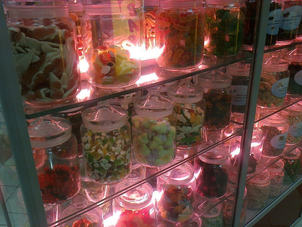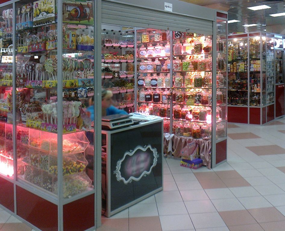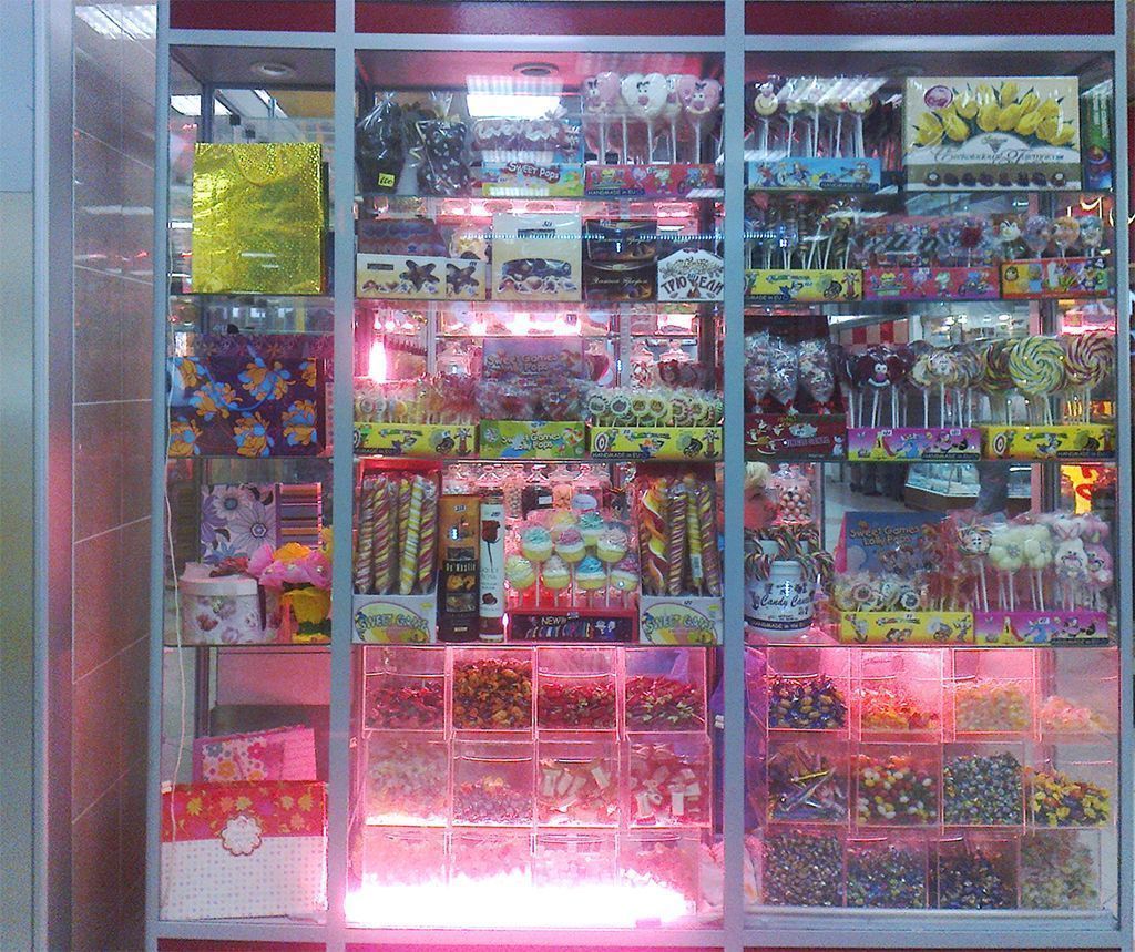 Пройти мимо, не взглянув на такое обилие разнообразных сладостей довольно сложно. Но чтобы магазин точно не остался незамеченным и привлёк дополнительное внимание, была установлена светодиодная подсветка витрин.