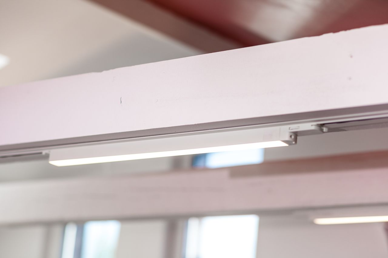 Для основного освещения было применено интересное решение: в деревянные потолочные балки были встроены треки (шинные профили) для светильников. На них установлены светодиодные трековые светильники и линейные светодиодные светильники. Линейные светильники были собраны из алюминиевого профиля, в который установлена светодиодная лента arlight® тёплого белого цвета свечения и блок питания для неё.
