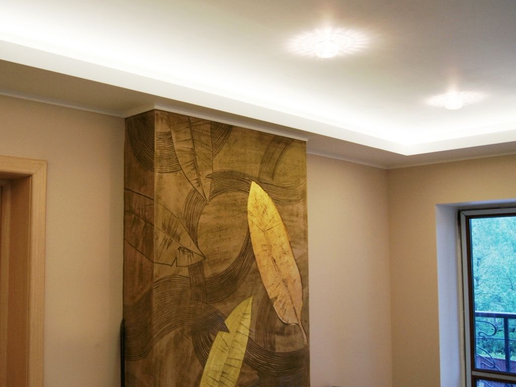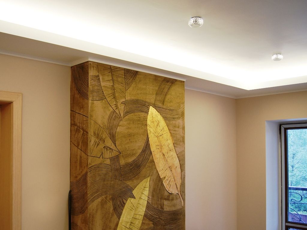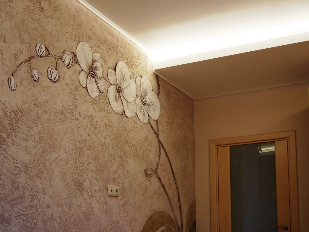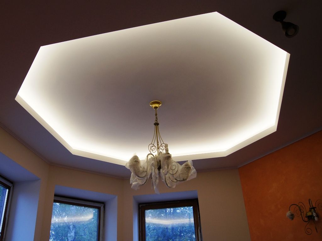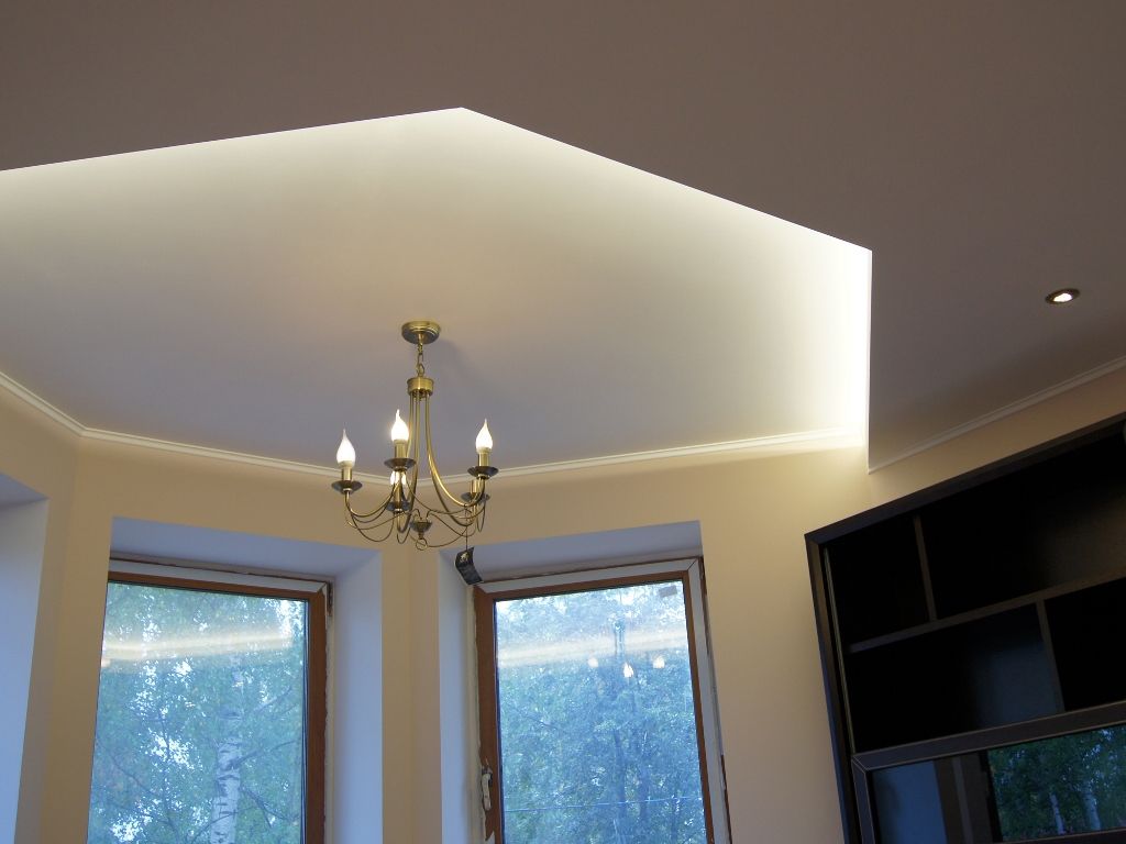 Скрытая светодиодная подсветка, установленная за гипсокартонным потолком, дает мягкий равномерный рассеянный свет. Применение диммеров