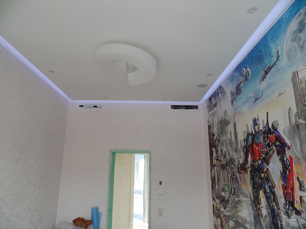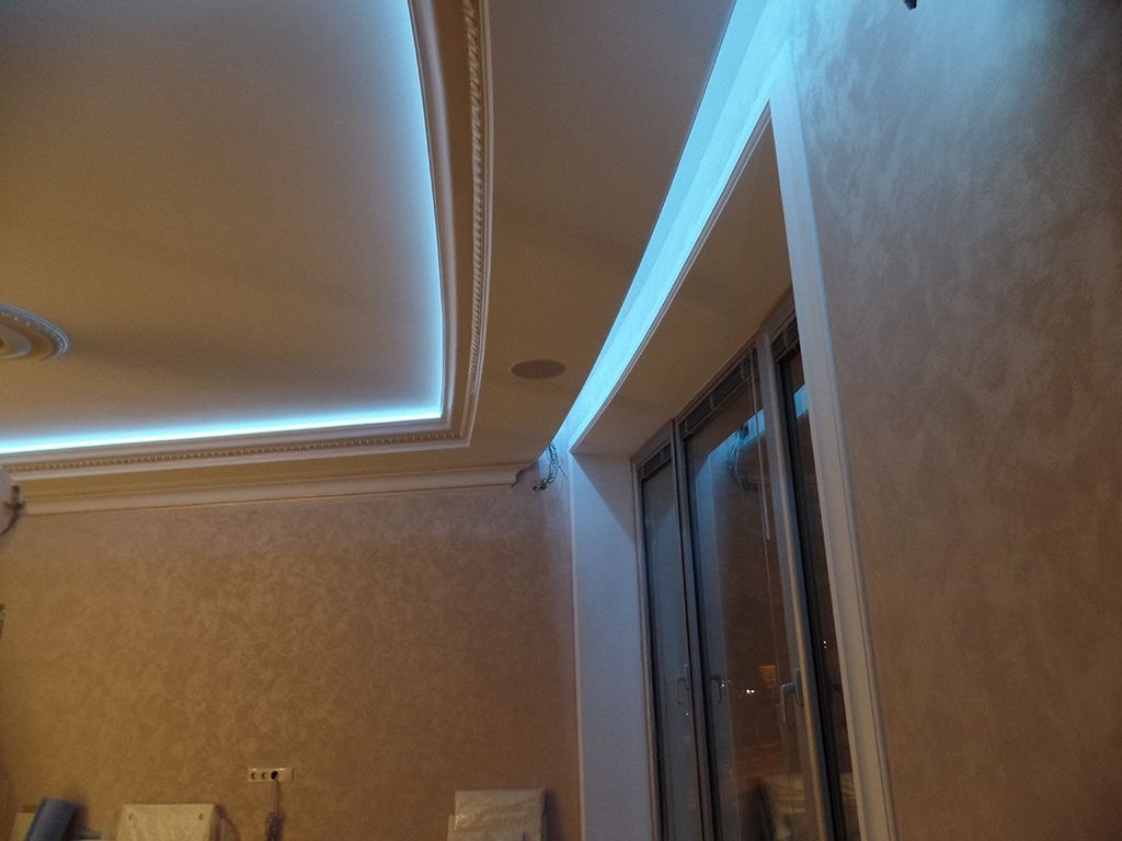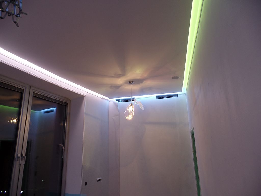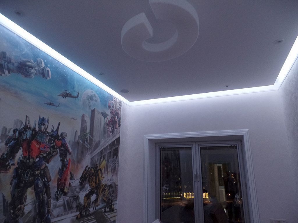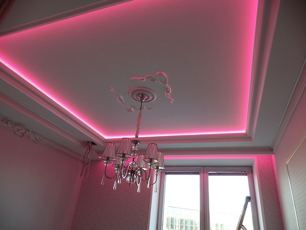 Во всех комнатах квартиры была установлена динамическая светомузыкальная подсветка, она работает в соответствии воспроизводимой музыкой. Для этого была использована многоцветная RGB светодиодная лента arlight®, управляемая музыкальным RGB контроллером arlight®. Светодиодную ленту установили в ниши потолка по периметру комнат и подключили таким образом, чтобы каждая из сторон комнаты была отдельной зоной подсветки. Светомузыкальный RGB контроллер arlight® имеет 4 канала, отвечающих за разные диапазоны звуковых частот, и светодиодные ленты были подключены таким образом, чтобы каждая из 4 сторон комнаты подсвечивалась разными цветами, в зависимости от играющей музыки.