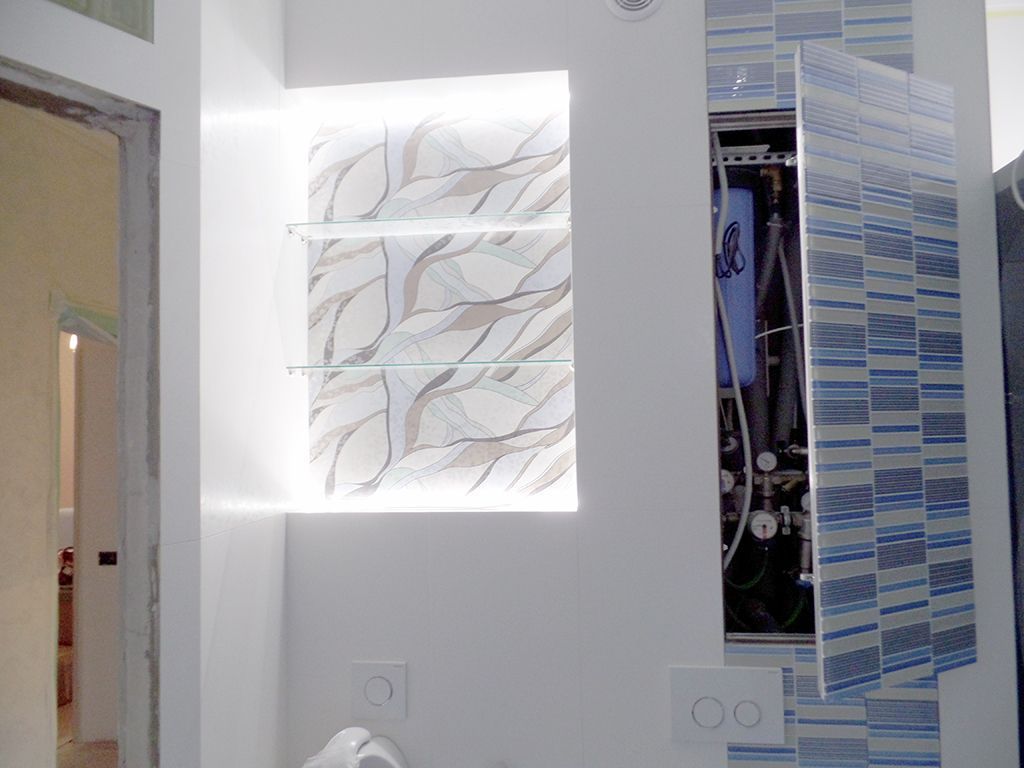 В ванной комнате и столовой организовали одноцветную подсветку, служащую дополнительным источником освещения. Для этого были использованы светодиодные ленты arlight® белого и дневного белого свечения соответственно. В ванной были подсвечены стеклянные полки в нише для хранения и угловой шкаф. В столовой - многоуровневый потолок. Для регулировки их яркости были установлены диммеры.