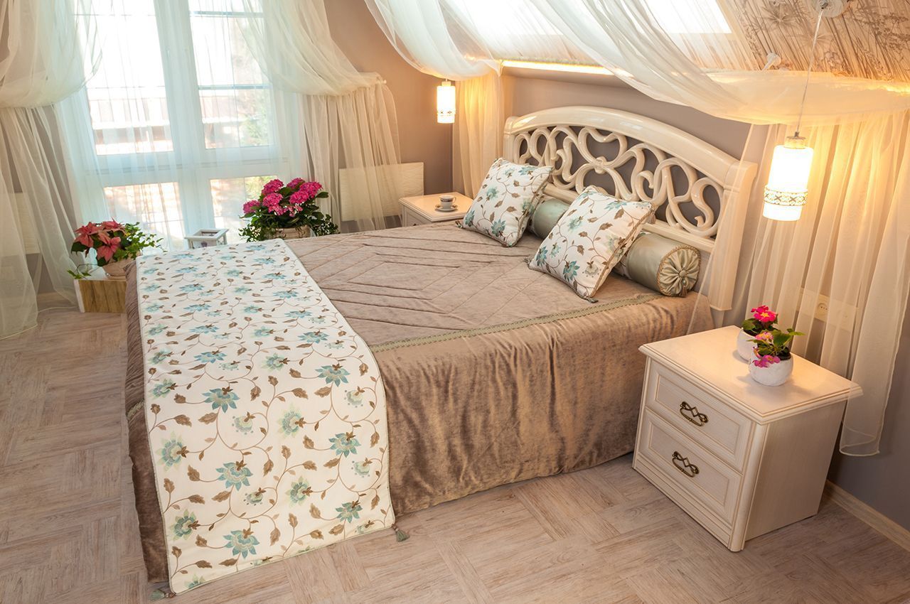 Светодиодная подсветка добавила уюта в спальне загородного дома, которая была переделана в рамках проекта «Фазенда» на Первом канале.